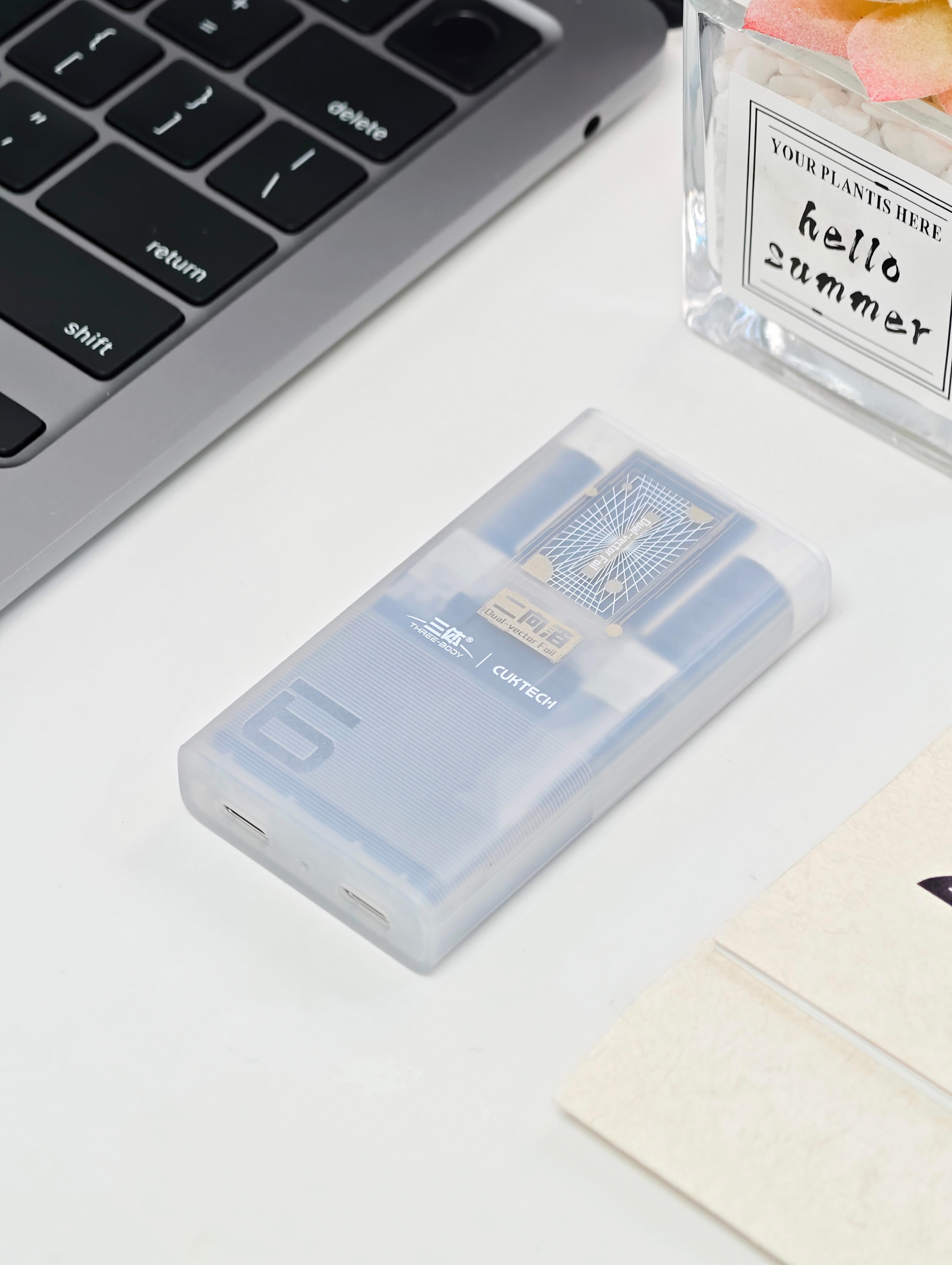 我最喜欢的酷态科6号电能卡片出三体联名版了~设计灵感来源三体二向箔,透明的外壳的设计,可以能看到内部的电路设计与排布。一股很浓烈的数码极客风,蛮特别的,双C口,最大输出功率65W,小小一只不占地,针对各大酒店墙插还不容易掉头,很完美的旅行充电器形态。这次三体款属于限量款,售罄为止。喜欢的可别犹豫