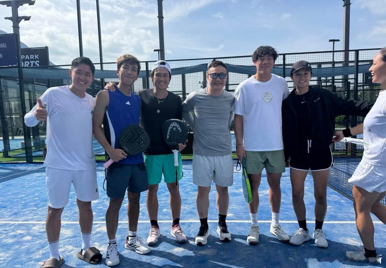 51岁陈奕迅在香港和朋友打网球,他的身材胖了好多,个子很矮,外形看起来很一般,还不如普通人好看。