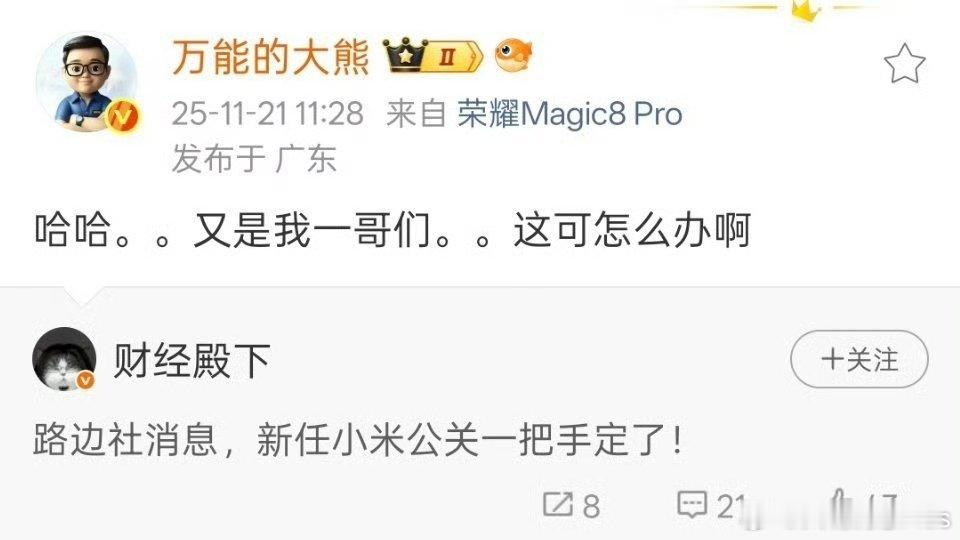 接替化爷的小米新公关部总经理人选好了?会是谁呢?大熊说是他一哥们……
