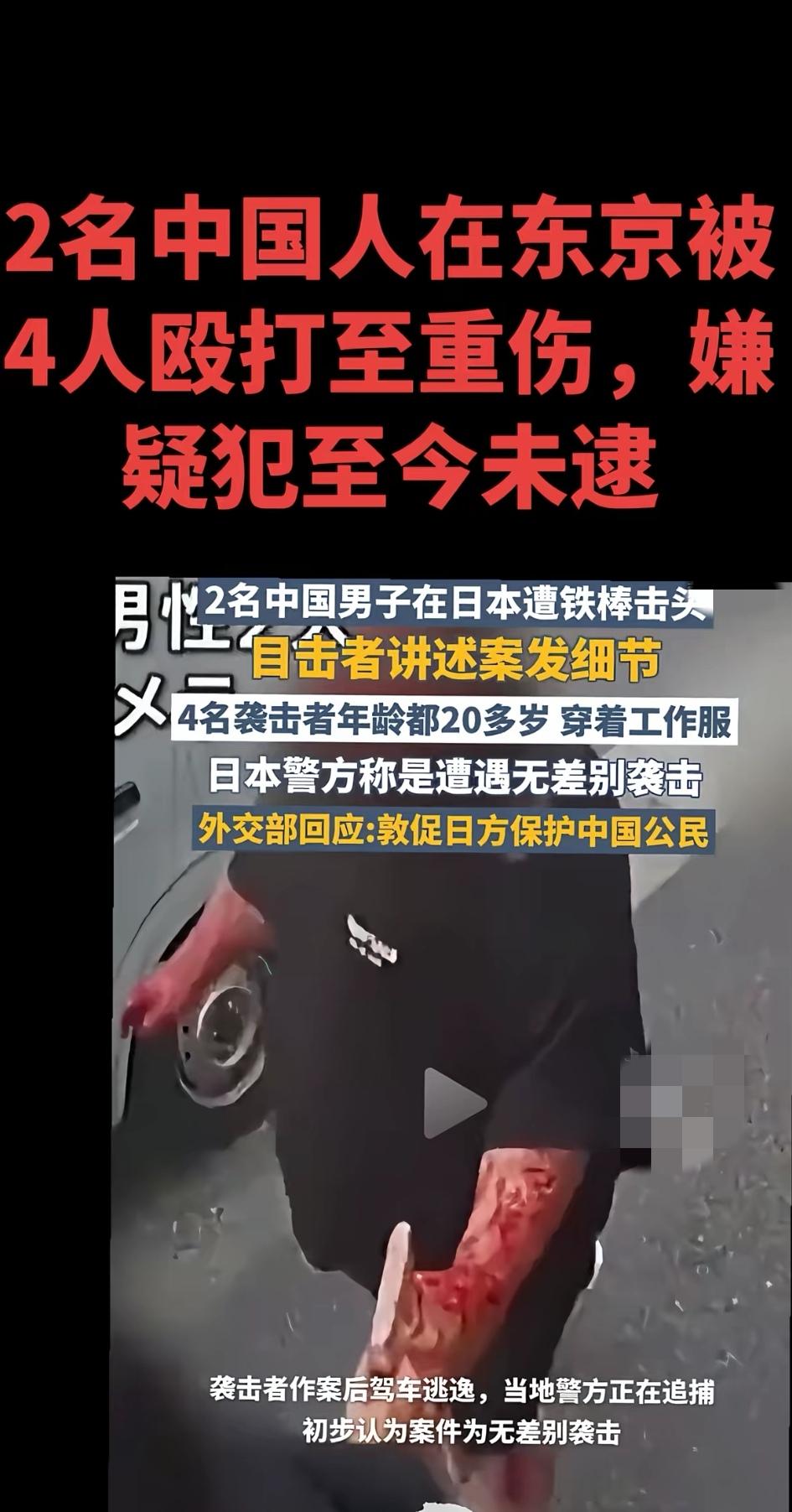 突发!!! 2名中国人在日本 东京街头遭到 4人棍棒袭击! 看到这个消息真的非常气愤,就是这样还有好多在现在的这个局势下还要去岛国去旅游的呢,真的很是想不明白。 要是国人打了岛国人,那肯定依法处理,可在岛国,国人被打,却不知会怎样?这事真值得我们反思,出门在外,安全得自己多上心。 咱们去旅游本应该开心放松,可安全没保障,再好的风景又有啥用?大家可得多权衡一下,听国家的话,不要盲目外出日本,要是你,面对这情况会咋想?