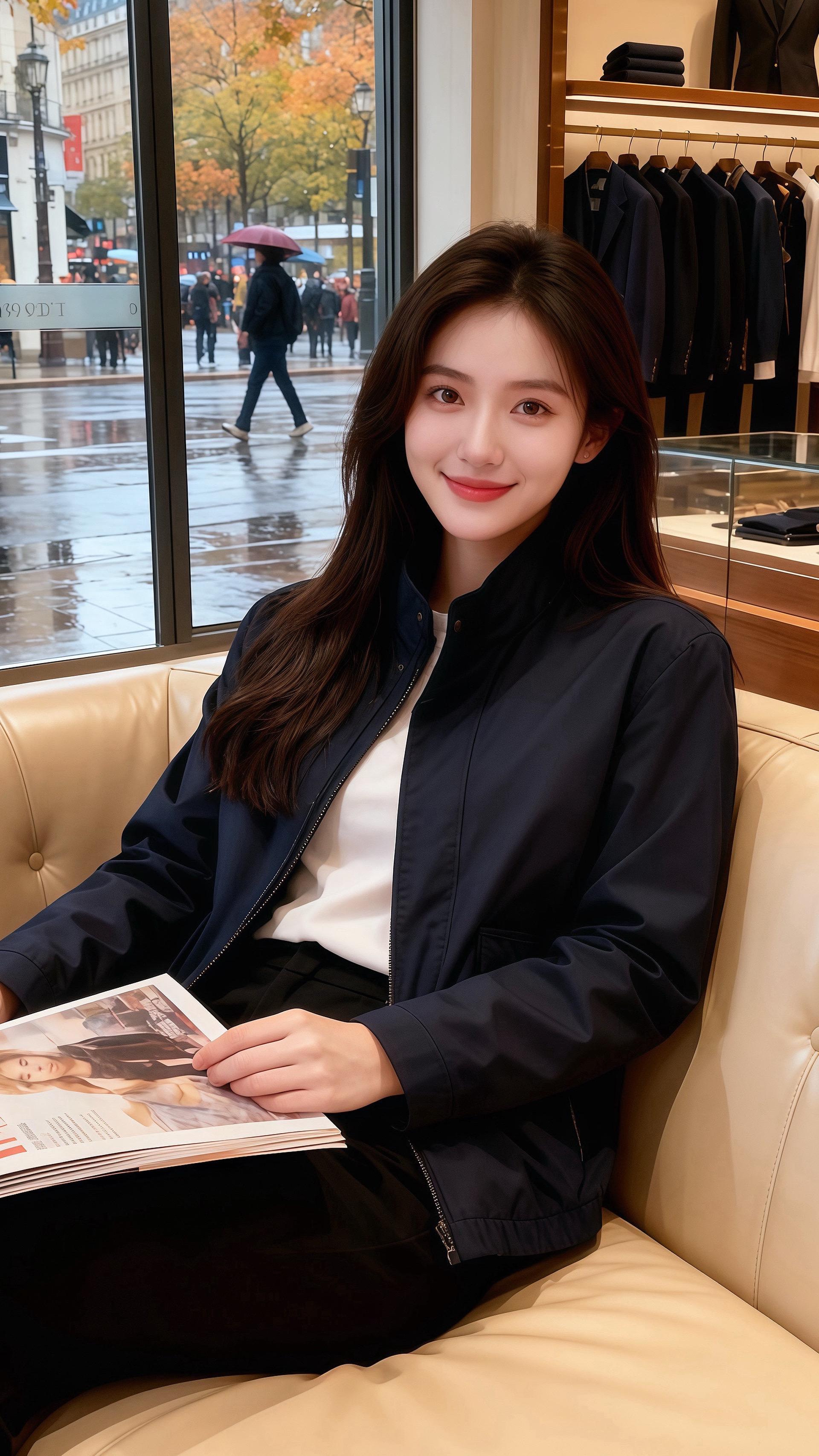 翻杂志时皓明坐在对面,指尖划过书页:“你穿简约款,总比模特多份温软。”许妍低头笑,袖口露出的白内搭,是他昨天塞在她包里的“搭夹克刚好”。