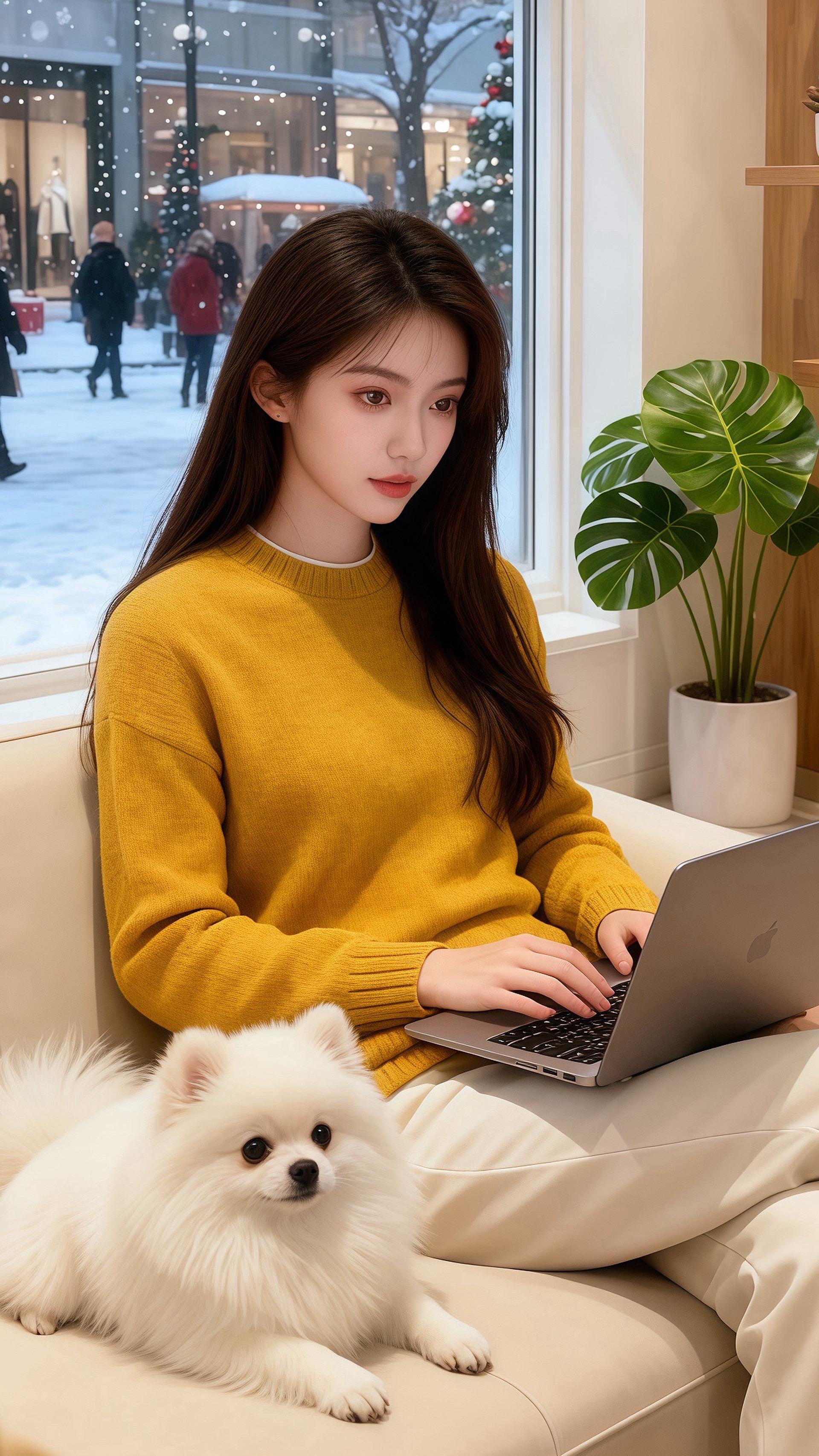 他抬眼笑,说这是给发小挑的圣诞礼。后来雪越下越密,他们挤在落地窗前等咖啡,他的毛衣蹭过她的袖口——软得像拢了团温温的云。