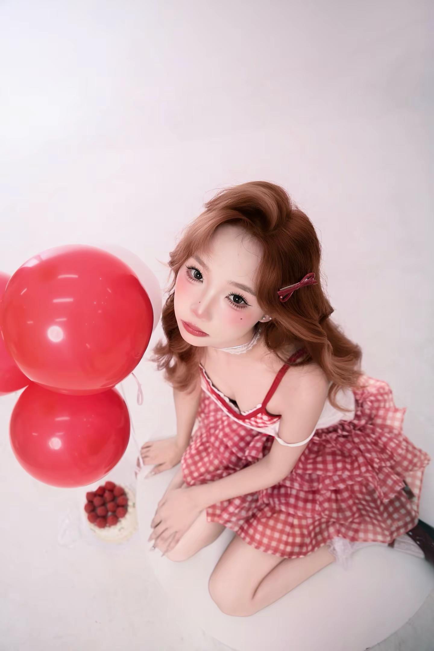 甜妹限定生日写真上新啦~又发现超绝甜妹穿搭公式✨纯欲印花吊带漏出小香肩➕格纹蓬蓬裙,纯欲感拉满~个人写真 少女写真 四七照相馆