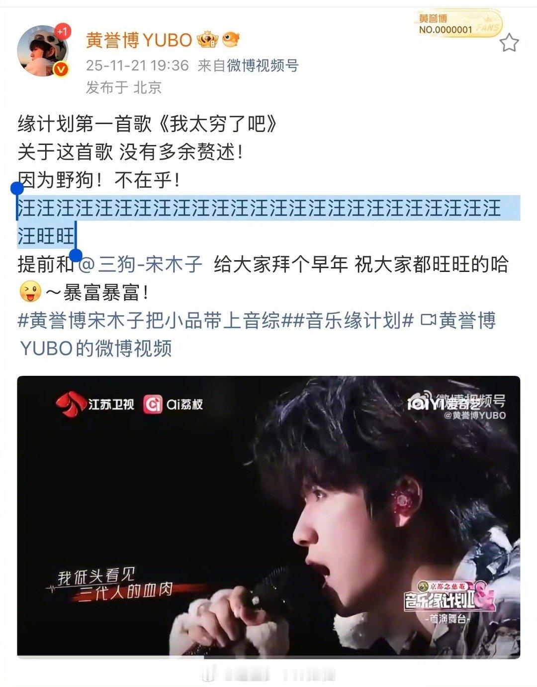 黄誉博这波操作太会玩了!用19个“汪”成功吸引所有人注意,点开正是《我太穷了吧》的舞台。歌里唱的是“太穷”,创意宣传却满分,真实又带点幽默的舞台不容错过!