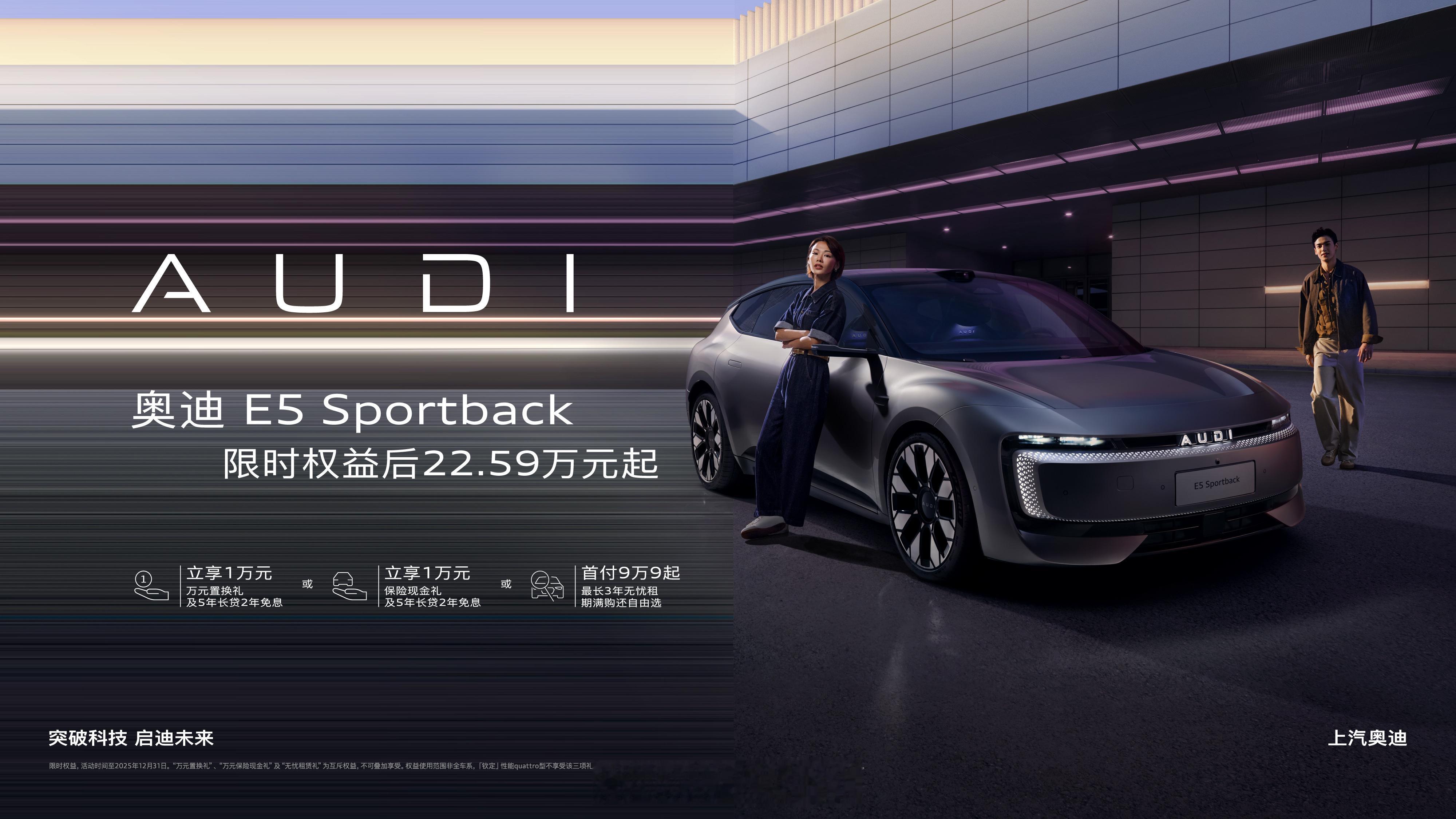 这一次广州车展,上汽奥迪带来的是产品力与策略的集中校准。奥迪 E5 Sportback 的“钦定性能 quattro 型”——27.99 万限时价,核心是奥迪在中国新能源市场重新给自己定了个定位:把性能、可靠性、智能体验这三件事做到用户真正能感受到的层级。在基础版上加 1 万块钱,但给了接近 5 万的升级内容:20 寸轮毂、285 宽胎、空气悬架、CDC 可变阻尼、后轮转向……这些不是配置堆料,而是彻底把 E5 的底盘完成度拔高一档。尤其是宽胎+空气悬架+后轮转向,这套组合在 30 万以内非常少见,甚至在豪华品牌都属于“往上看”的配置。前排按摩、后排加热、BOSE 音响这些日常体验项也都补齐了。可以看出,上汽奥迪是真的在听用户在乎什么,而不是按照过去德系那套“你该喜欢什么,我来告诉你”。这台车的底层价值仍然来自一个关键:宁德时代 CTP 无模组电池 + 800V 平台。773 公里续航、10 分钟补 380 公里,是在现实场景里真正能用得上的补能能力。智能驾驶部分,上汽奥迪和 Momenta 做了一个“奥迪传统驾驶质感+端到端大模型”的组合,这是把豪华品牌的驾控 DNA 用新技术重新表达。AUDI E SUV 概念车也亮相,奥迪正在做中国市场的“家族化电动矩阵”;同时燃油端 A5L Sportback 的旗舰版也正式进入交付,上汽奥迪正在把“油电双线”做得更彻底。
