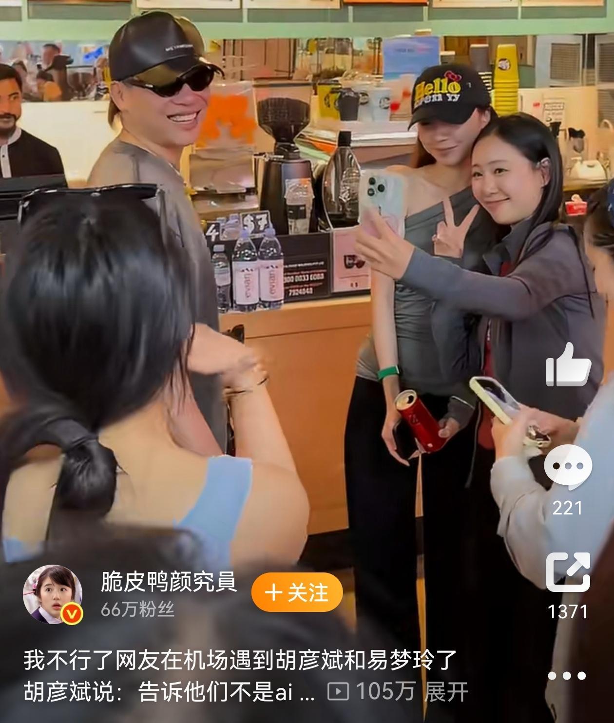 哈哈哈,把大家笑的不行,这是亲自证实不是AI的了啊!😂有网友在马尔代夫机场遇到了易梦玲和胡彦斌,胡彦斌说:“社交媒体发一发,告诉他们不是AI的。”