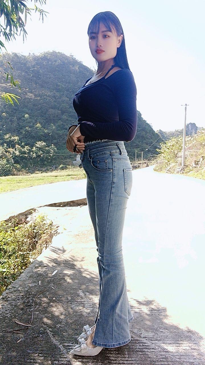 牛仔裤穿搭 紧身牛仔裤 山里姑娘