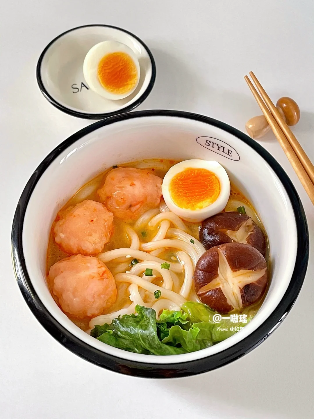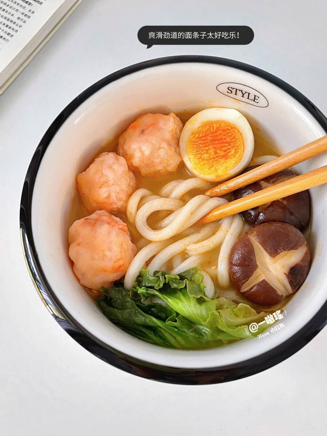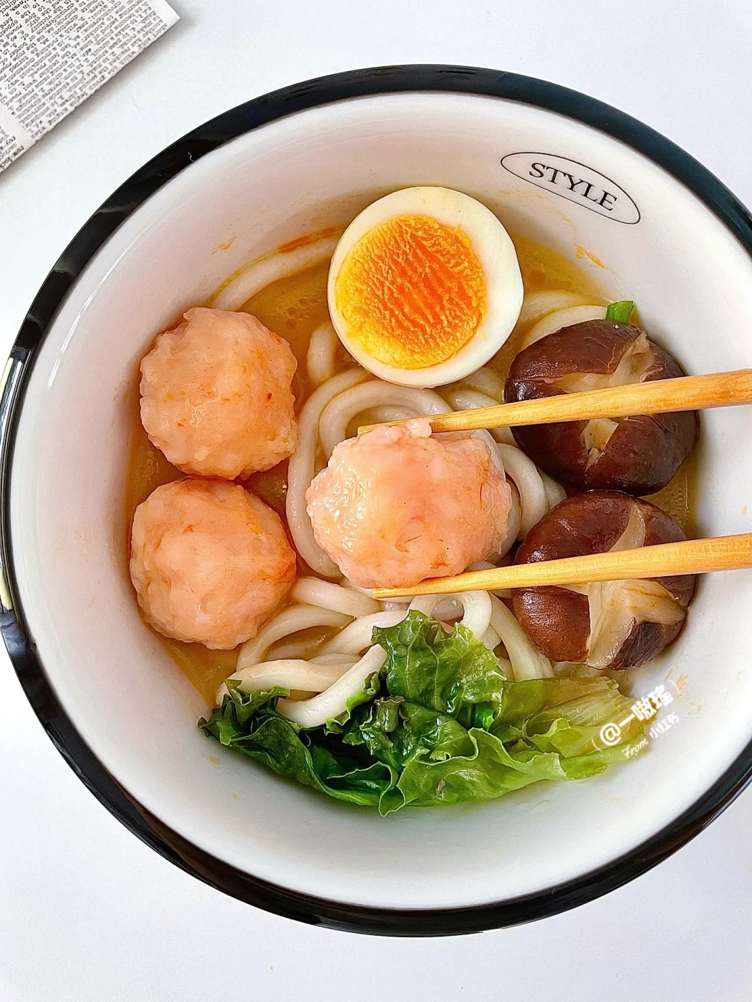 🥢鲜香低卡5⃣️分钟搞定味增虾滑乌冬面🍜