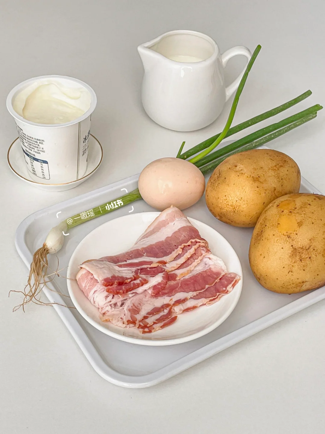 土豆 培根 鸡蛋 厚酸奶 淡奶油 小葱