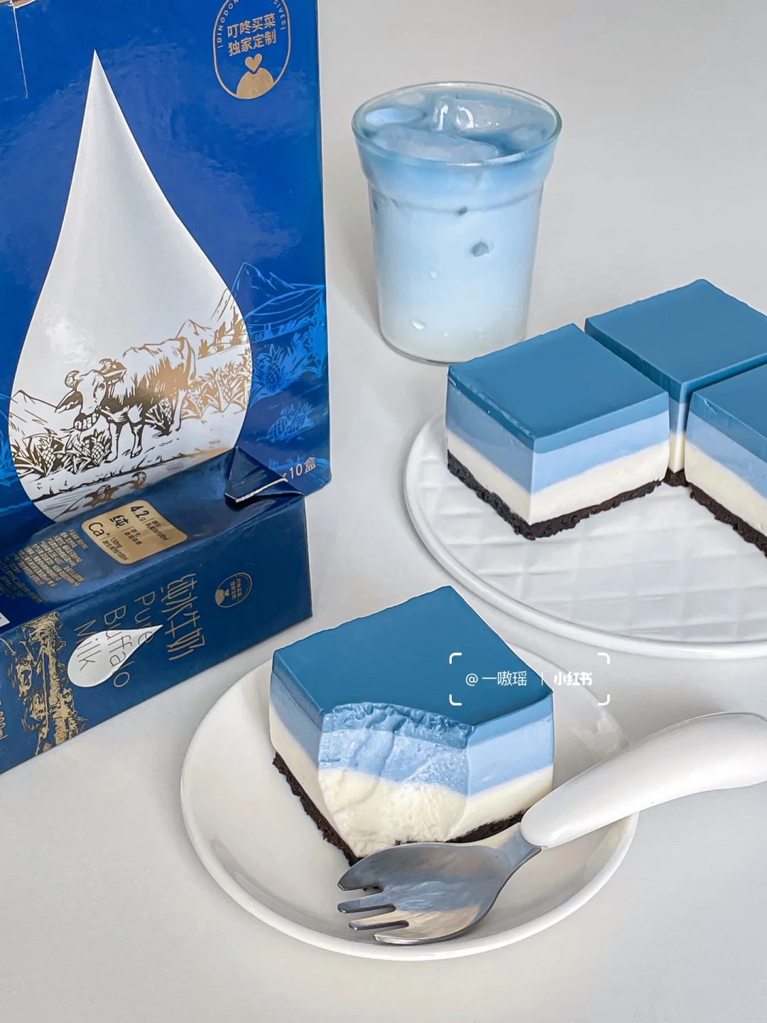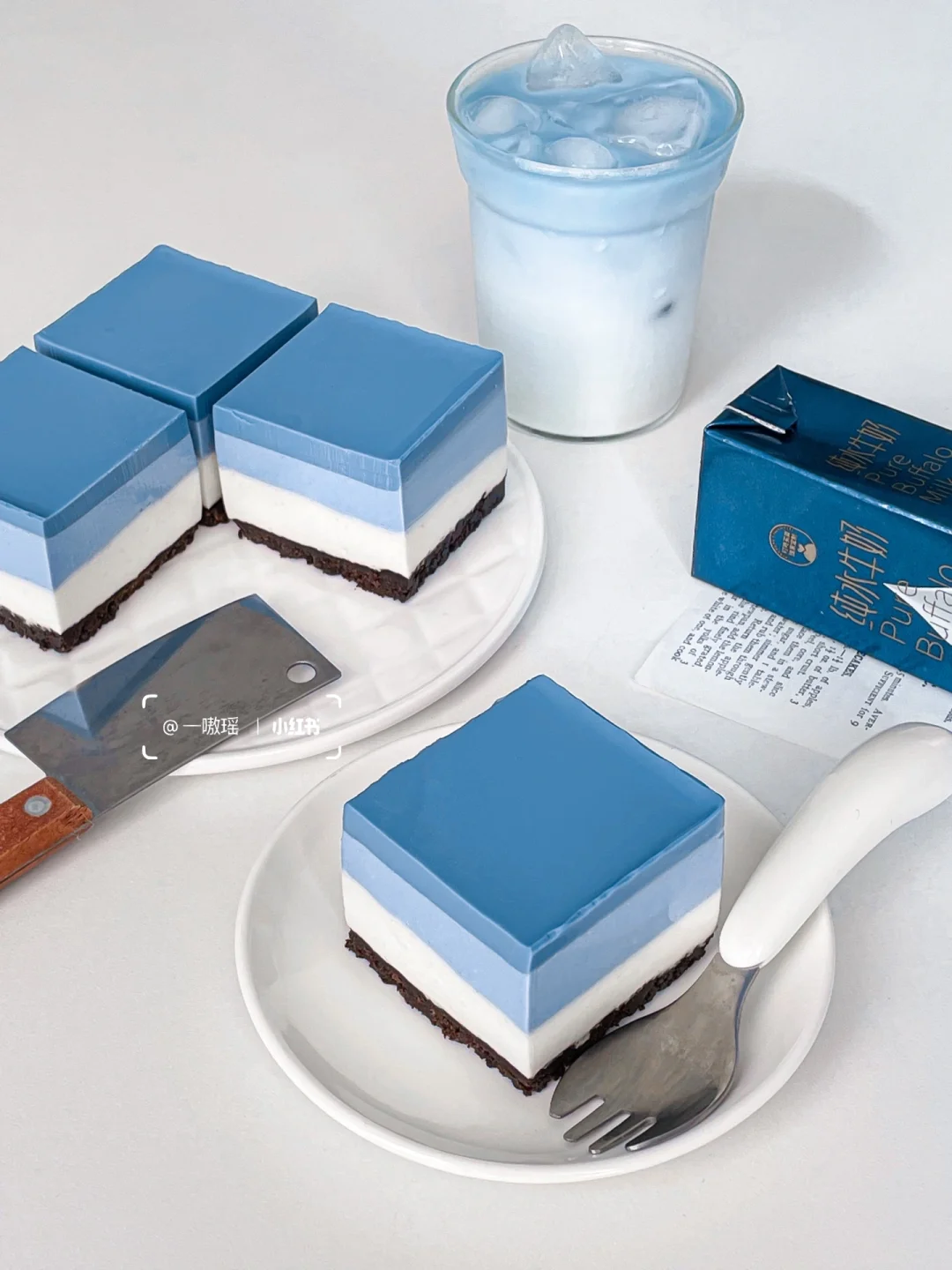 冰冰凉凉的蓝色大海酸奶慕斯🌊搅一搅就能做‼️