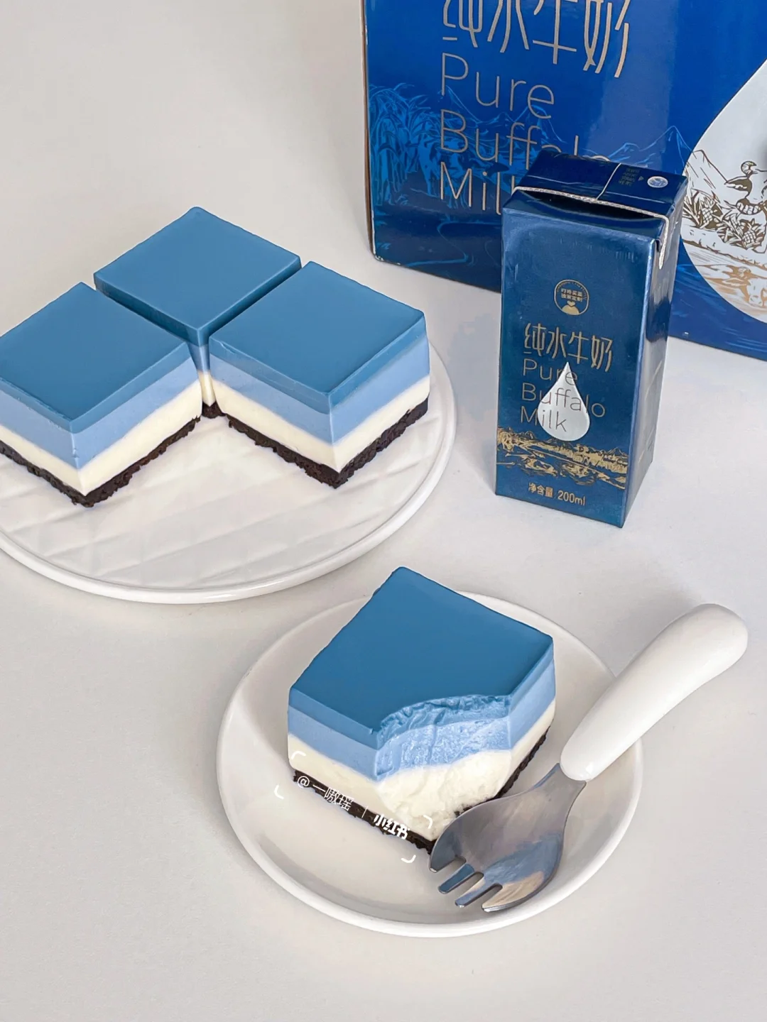 用纯水牛奶和酸奶代替奶油奶酪,低卡友好,入口绵密丝滑,奶香浓郁!冰凉清爽仿佛海风拂面🫧