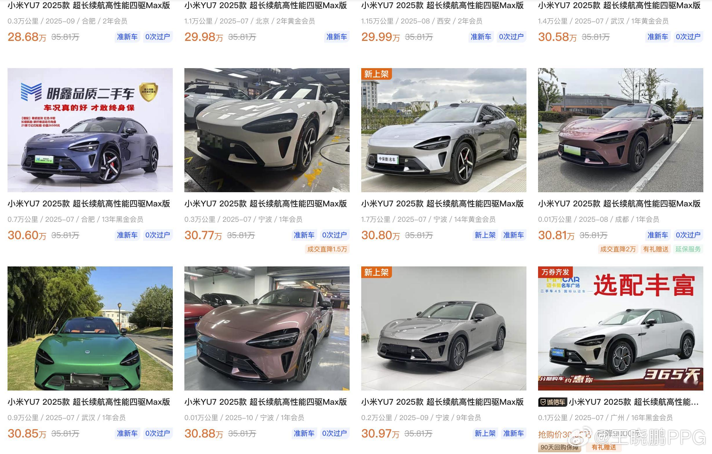 这次车展的小米的展台,我拍了一张照片人气下降了很多车型摆的也不多,现场安保人员不少印着雷总口水话包装的矿泉水堆的成小山,也可能是米粉还没到场领至于小米的热度,从二手车市场上可以见到一二,二手车商叫苦不迭,一个品牌失去神性的时候,大家对于它的向往感就会消失掉,过去的奔驰宝马,现在的理想小米