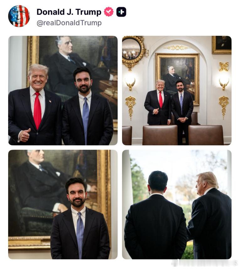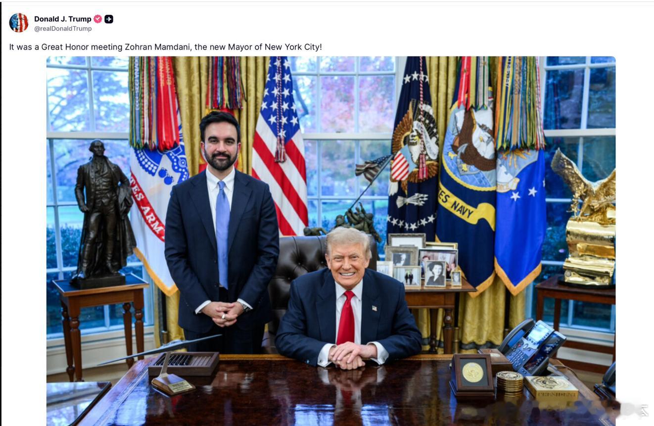 【黄金时代】川普发布多张与马姆达尼同框照:“很荣幸会见纽约市新任市长佐兰·马姆达尼!”