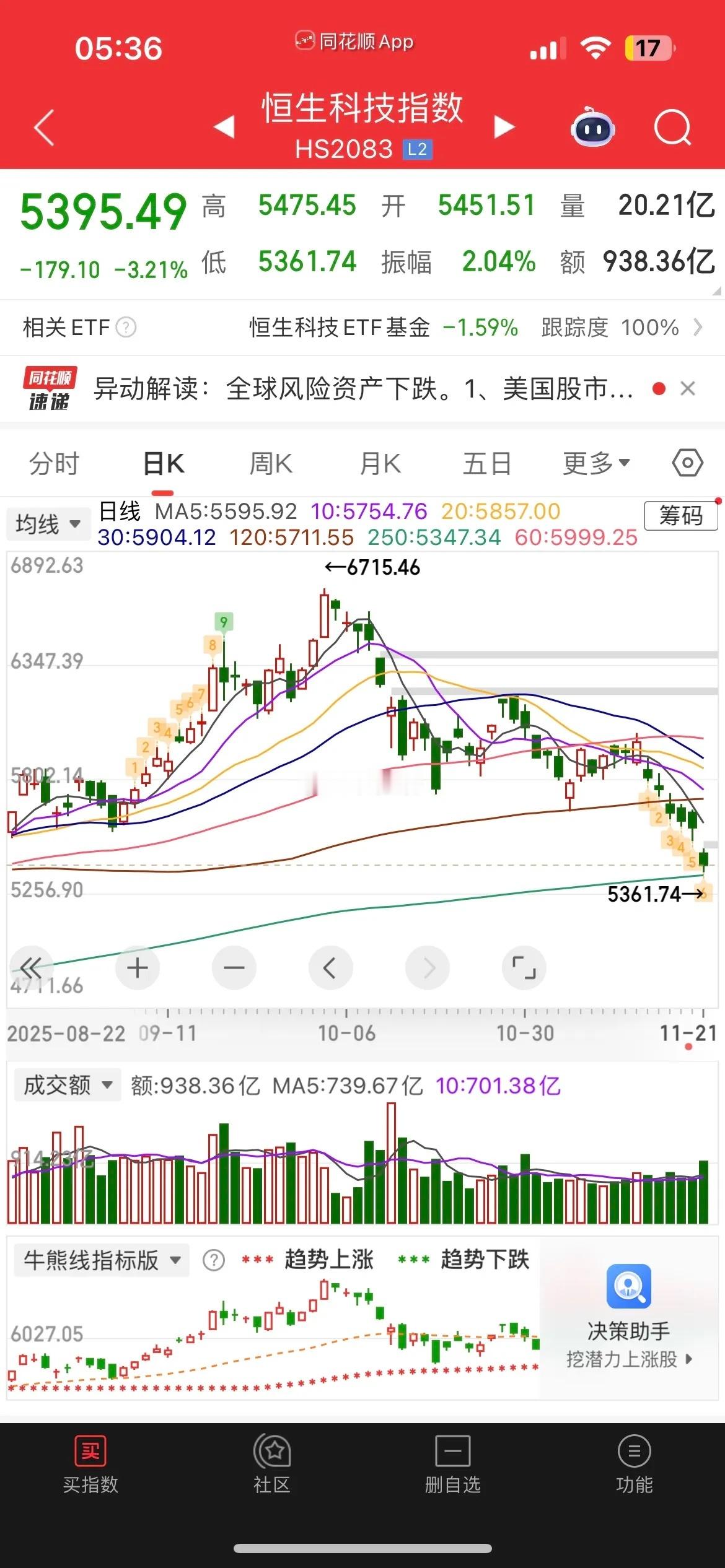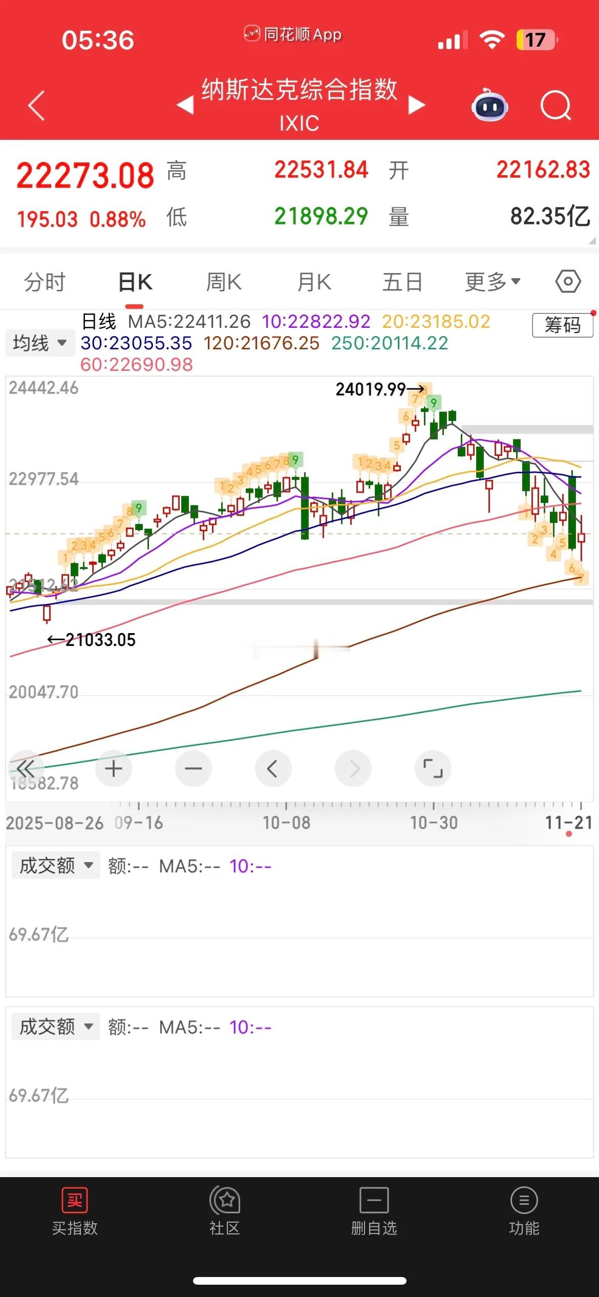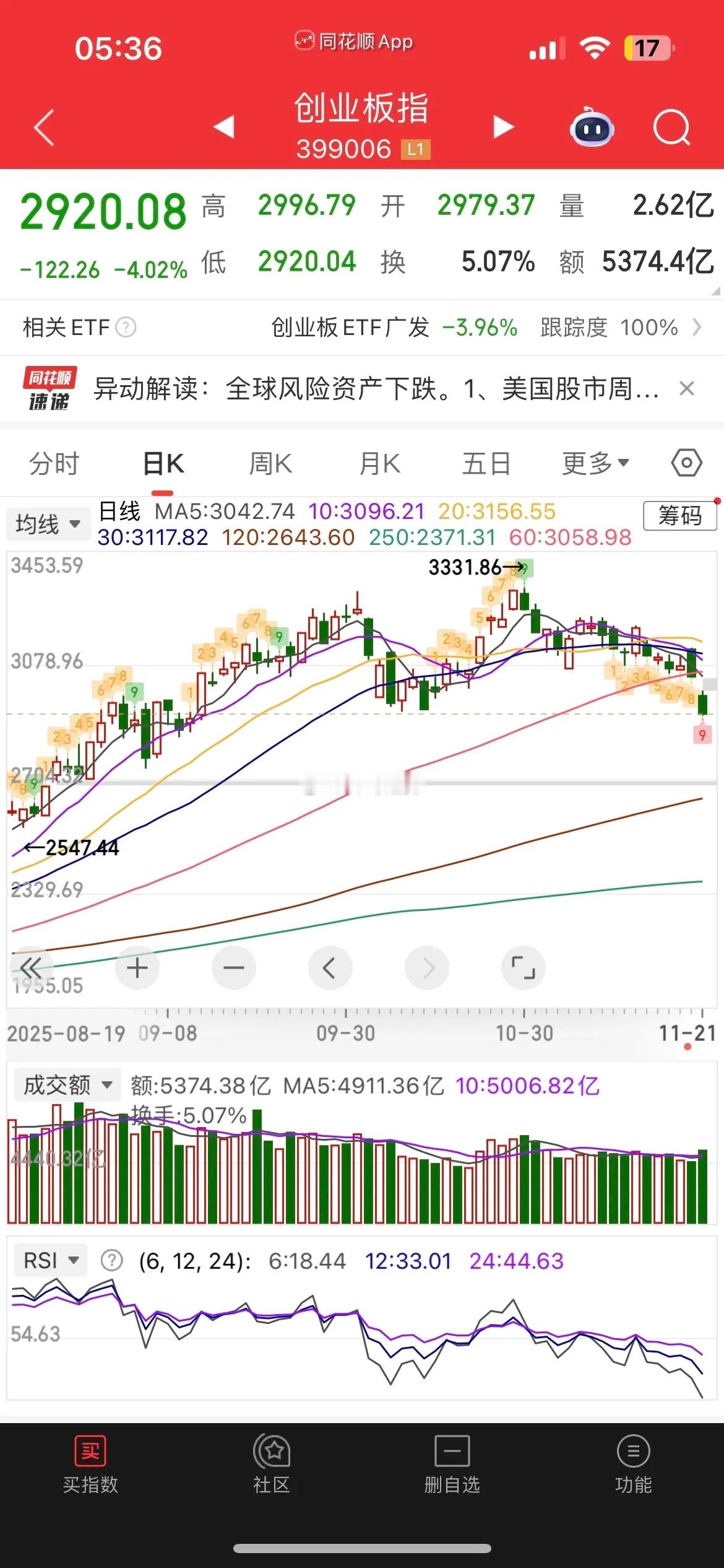 一觉醒来,重磅利好来袭,美联储出手救市,美股一度大涨,中概股普涨,纳指金龙指数涨逾1%,阿里跌0.22%,百度涨0.45%,京东、哔哩涨近2%,阿特斯太阳能大涨超5%,富时A50涨0.71%,恒生主连涨1.22%,这样看下周我们大A大概率会迎来反包修复,强度还得看量,而港股昨天六连杀,下周应该会有所止跌回升。昨晚美股探底回升,三大指数全线翻红,道指涨逾1%,纳指涨0.88%,大型科技股涨跌不一,英伟达、特斯拉跌近1%,苹果涨近2%,甲骨文大跌近6%,存储龙头闪迪涨超2%,美光科技涨近3%,还得是美股,人家科技股一大跌,美联储立马就出手安抚市场,说12月份仍存在降息空间,受此影响,人民币汇率、黄金大涨,不得不说,还是人家会玩,这降息预期管理是真牛,一收一放,全球资本市场跟着跌宕起伏。昨天市场放量大跌,内资跑了近1800亿,沪指百点长阴,再度失守3900,并跌破60日均线,连绿一周,创业板大跌超4%,两市个股跌幅超7%的更是近500家,中位数跌幅近4%,可以说血流成河,惨不忍睹,好在杀出来了不少量,目前两市总成交逼近2万亿,有量就还能看,下周关键看市场能不能快速向上完成补缺,如果能补上说明趋势还在,不然估计还得惯性下杀,板块上昨天Al应用和机器人概念逆势走强,锂矿和存储概念全线跌停,军工方向局部活跃,高位抱团人气妖股集体退潮,小登CPO、半导体新能源重挫,现在看科技硬不起来,市场就没得玩,所以解铃还需系铃人,市场情绪要想止跌企稳,还得看双创和大科技,板块对应着就是半导体和新能源,只有它俩赢起来,市场就还能接着舞。点赞就是对峰哥最大支持!