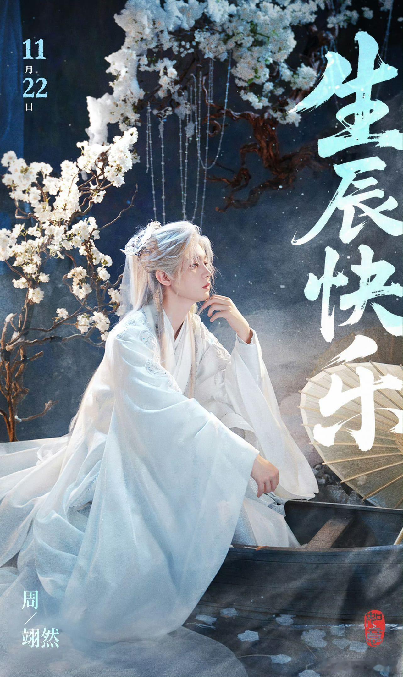 白发若雪,白衣翩跹!25岁的周翊然自带贵气与少年感,眉眼间藏着不谙世事的澄澈,又透着侠骨柔情,生日限定古风造型直接美到心巴上🎂
