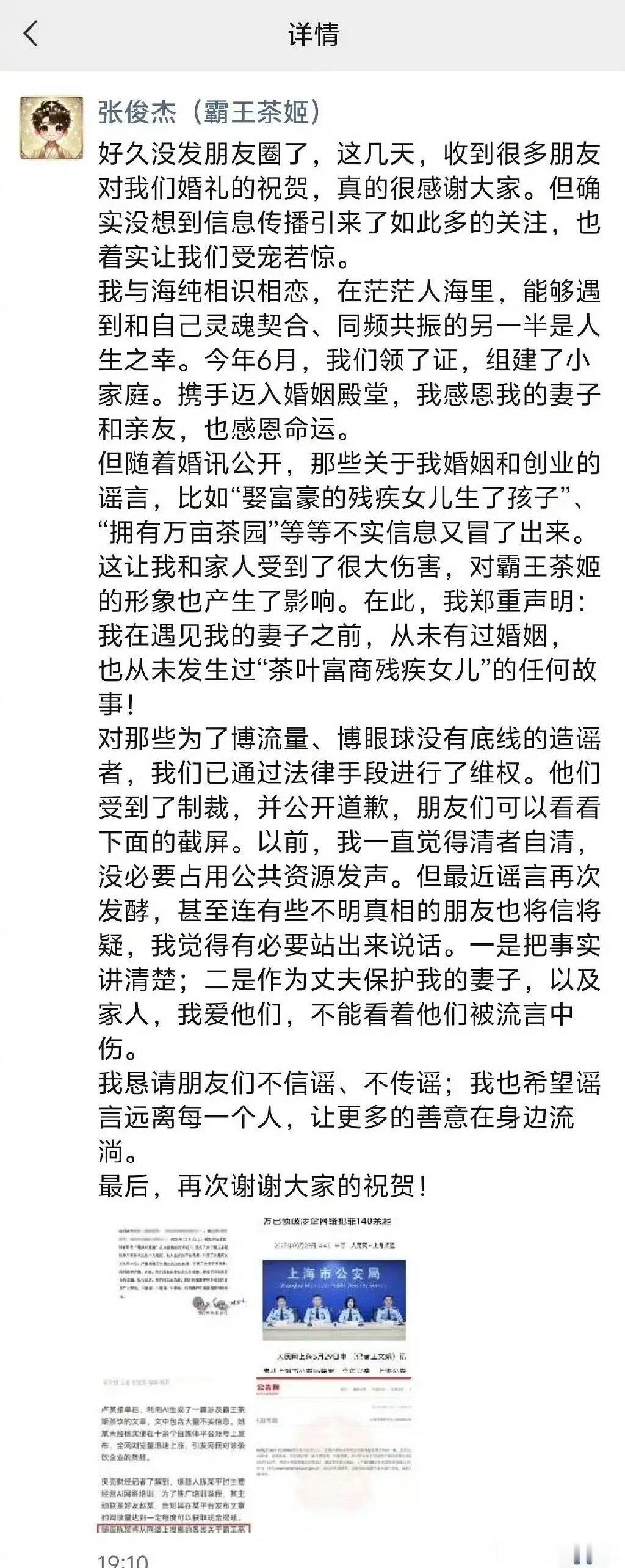 霸王茶姬创始人发朋友圈否认网络“娶富豪残疾人女儿生孩子”等不实谣言🙉原来这些都