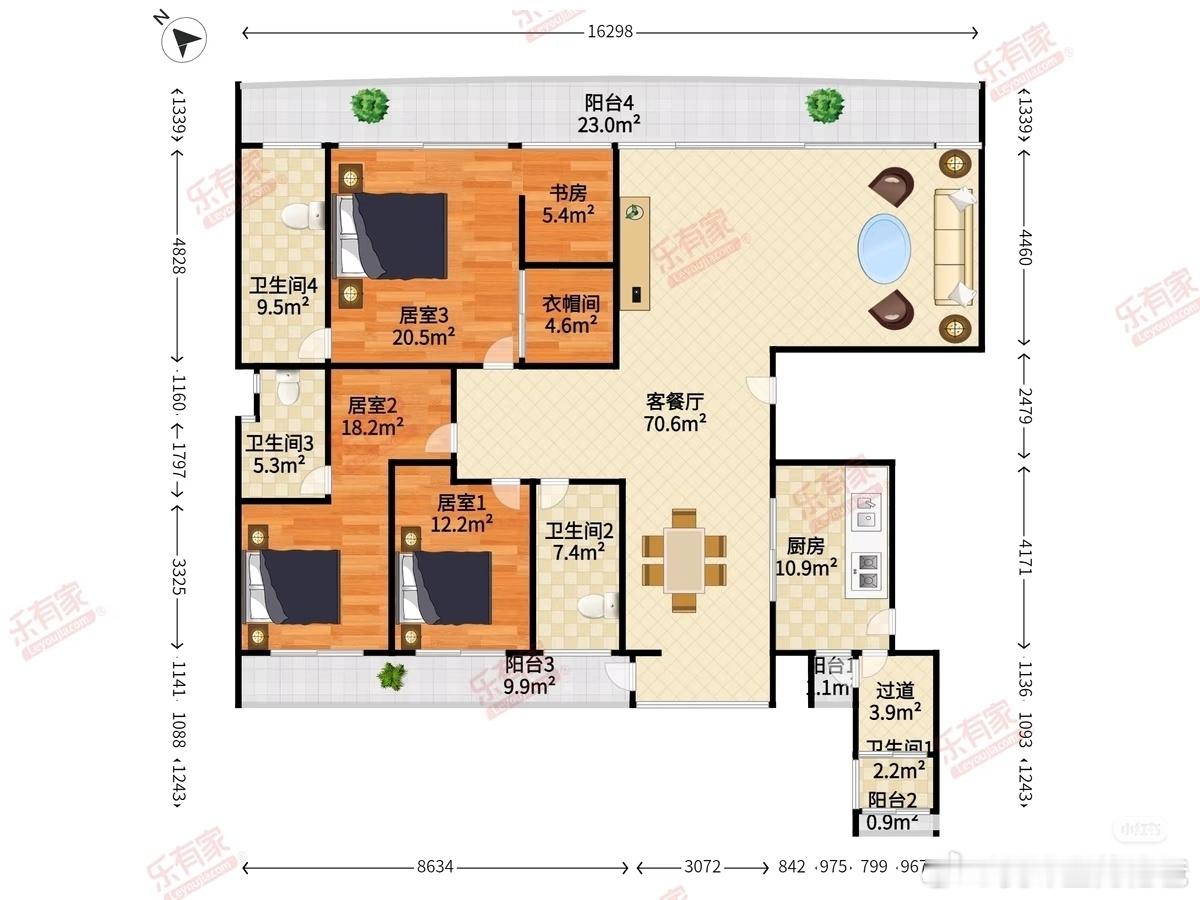 汉京九榕台172平,只能做三房,阳台浪费,客厅狭长浪费,卖1690万。好像香港明星比较喜欢这个小区。