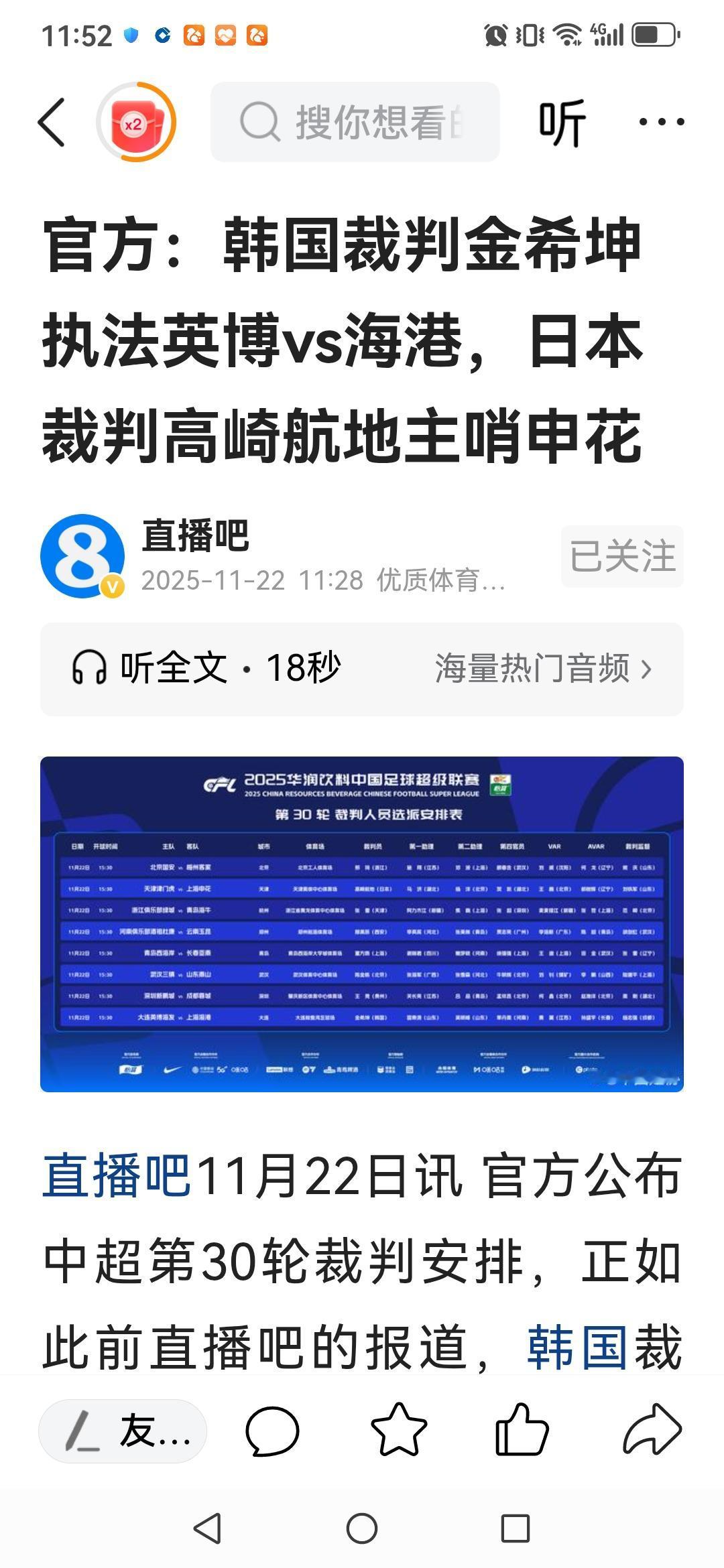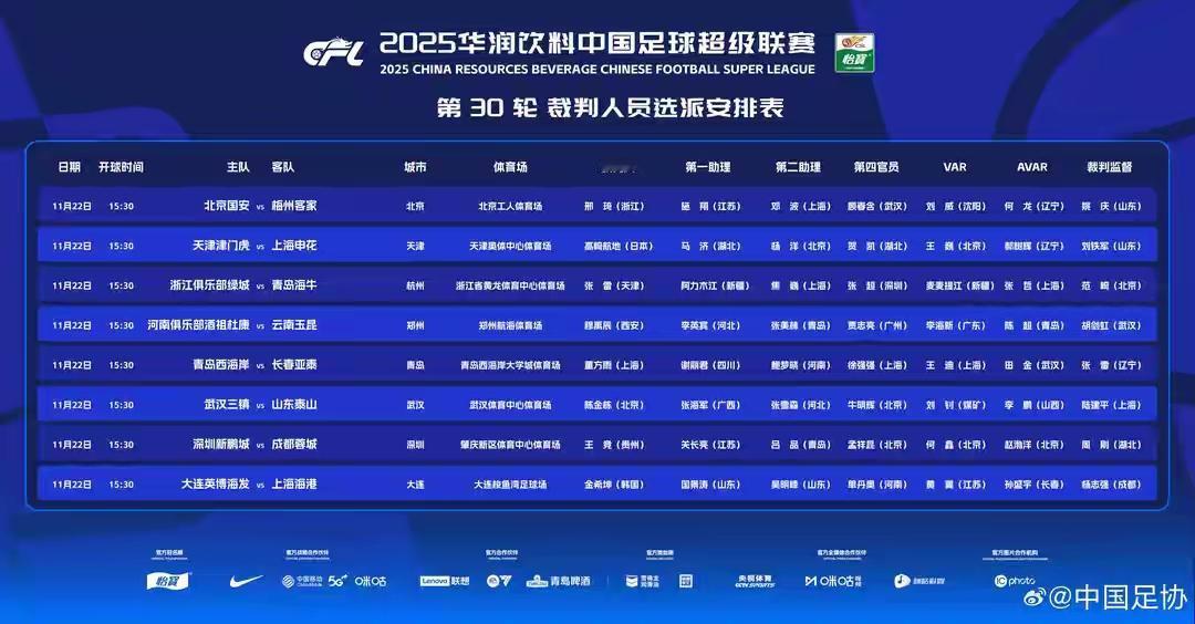 姗姗来迟的第30轮裁判名单,有两大看点: 其一,本赛季力保冠军归属的李海新、艾堃、麦麦提僵等人全都靠边,在大功告成后没机会挣最后的表现; 其二,由日韩裁判执法上海双雄的比赛,当比新加坡的塔基和澳洲的金那两位高点,说明手心手背都是肉,足协此时心眼没偏。