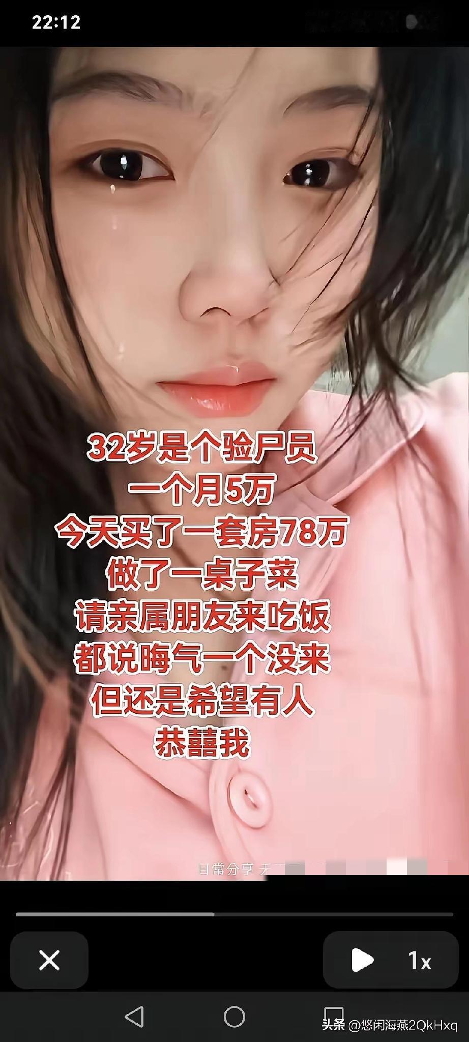 32岁是个验尸员,一个月5万,今天买了1套房78万,做了一桌子菜,请亲戚朋友来吃饭,都说晦气一个没来,但还希望恭喜我。 姑娘是验尸员,凭胆量和本事挣钱,一个月5万比大多人都强,靠自己买下属于自己的房子,多厉害。 亲戚们嘴上嫌“晦气”不来,暗地里说不定还盼着她主动分享、盼着被恭喜,虚伪到骨子里。 职业从来没有高低贵贱,更不分什么晦气不晦气。 验尸员是帮逝者说话、给生者慰藉的积德活,比那些嫌贫爱富、背后嚼舌根的人高尚多了。 靠自己双手挣来的体面,比任何虚无的面子都金贵,没必要为了世俗偏见委屈自己。 那些不来的亲戚根本不值得放在心上,真正的祝福从来不会被职业偏见左右。 你觉得姑娘该在意亲戚的看法吗?如果是你,会去恭喜这位厉害的姑娘吗