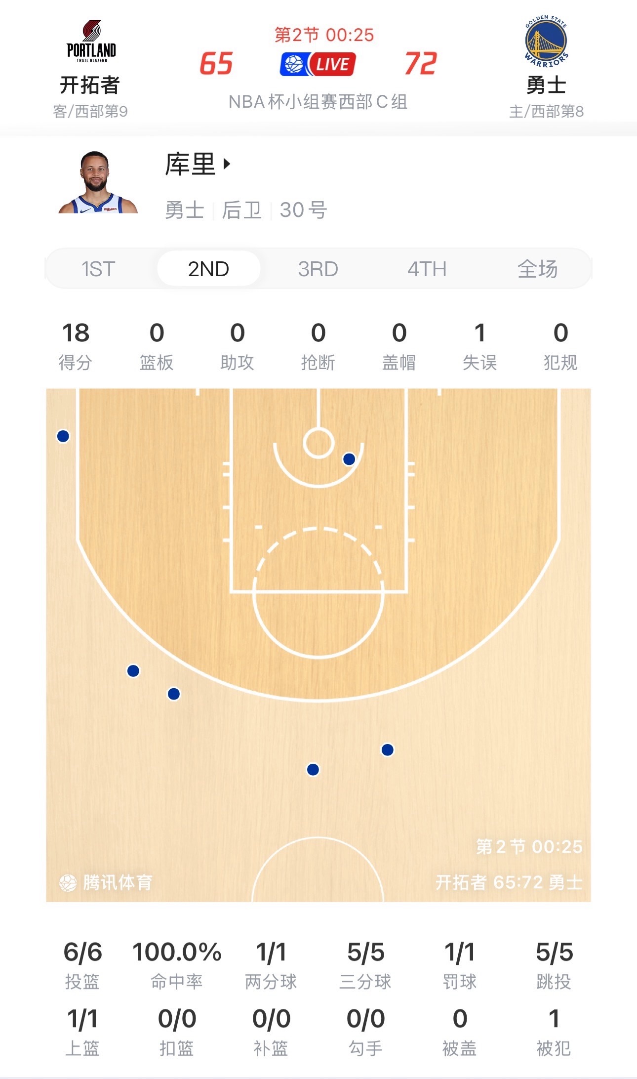 第二节的库里,百分百命中率独砍18分6投6中,三分球5中5这尼玛还说啥呢牛逼就完事了哈哈哈哈哈