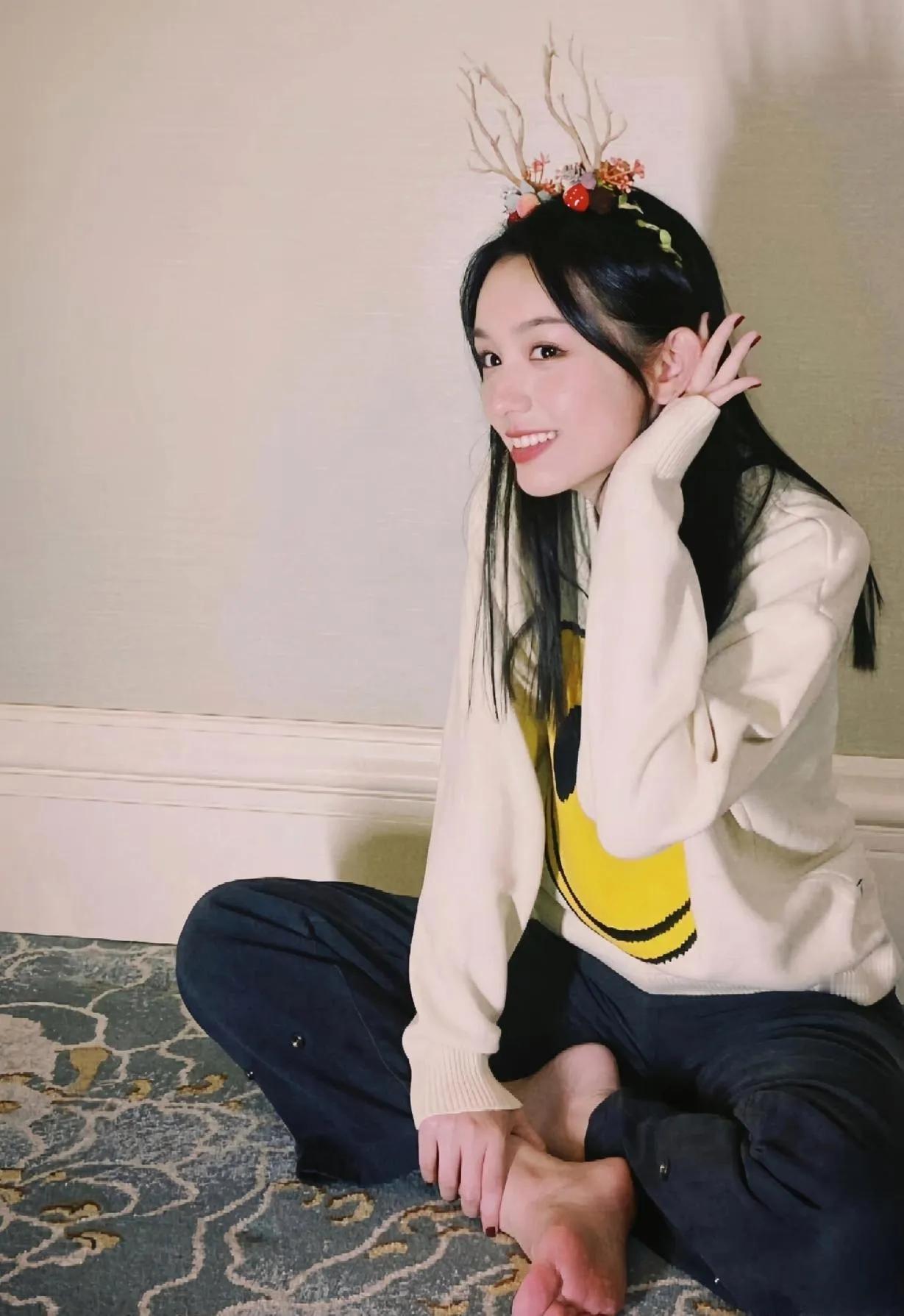 周也的脚也太好看了吧! 穿得休闲还戴了小鹿角,光着脚特别随性可爱~ 这脚的线条也太精致了,细节控表示狠狠心动!
