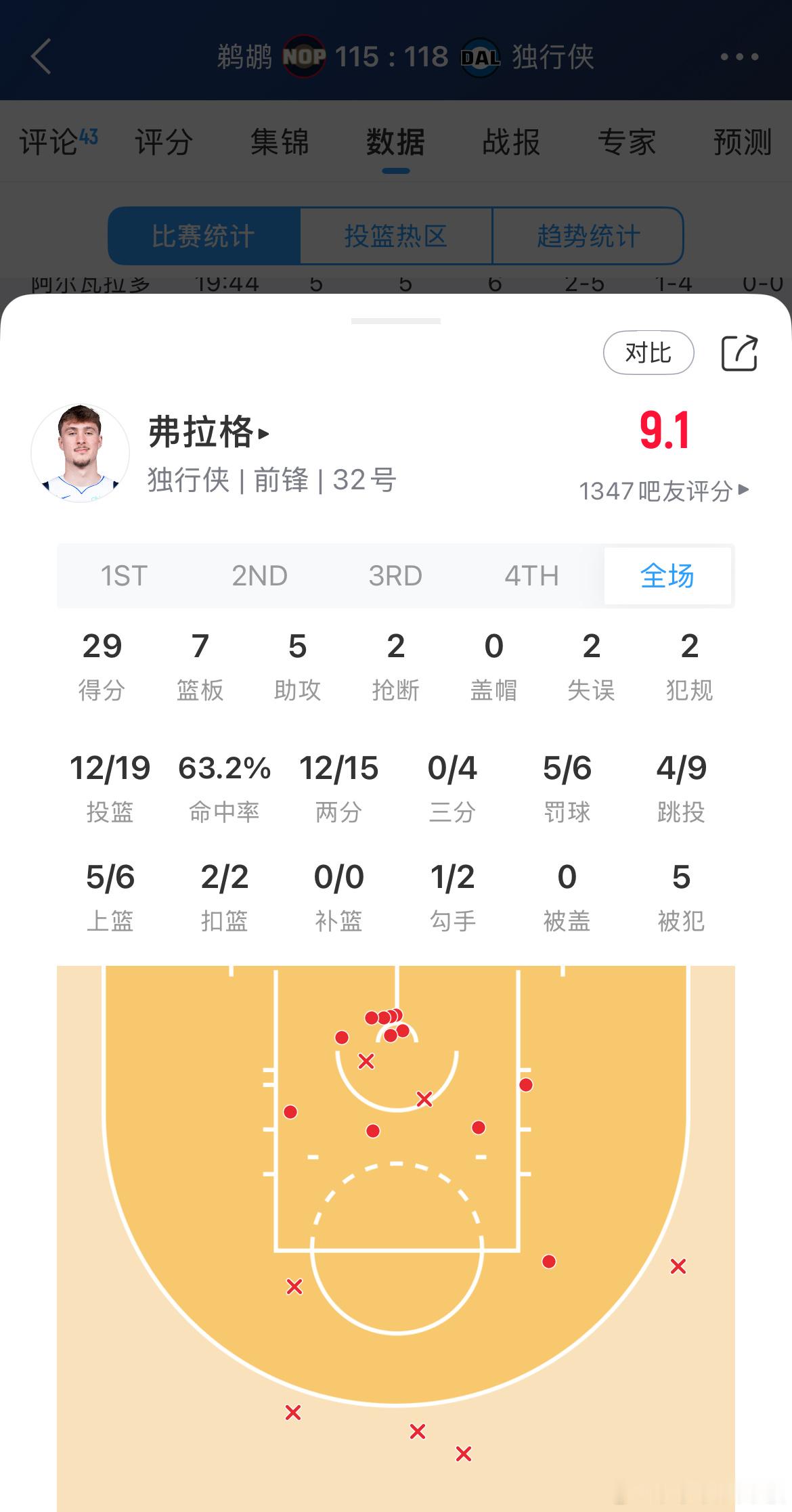 弗拉格19中12取得生涯新高的29分,第四节5中4拿下12分🔥