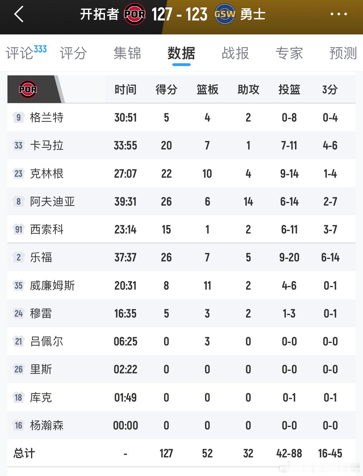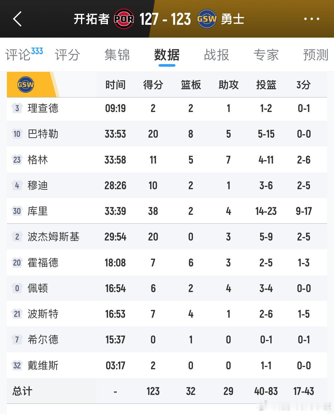末节遭逆转!勇士不敌开拓者遭遇三连败