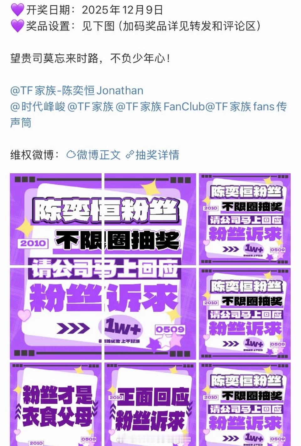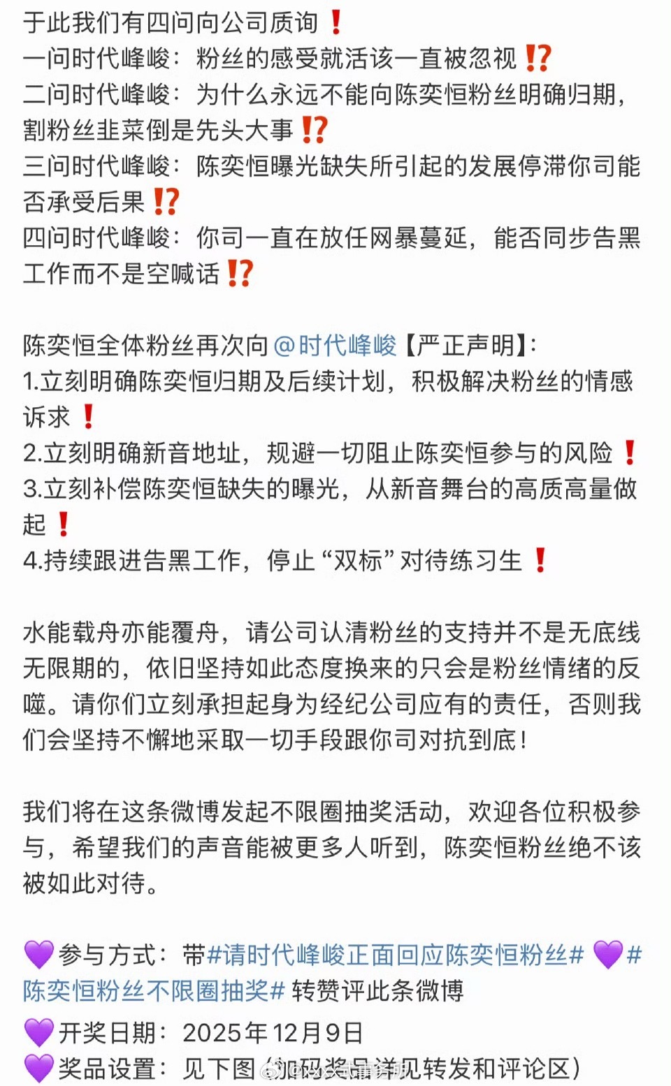 陈奕恒粉丝不限圈抽奖,向时代峰峻维权