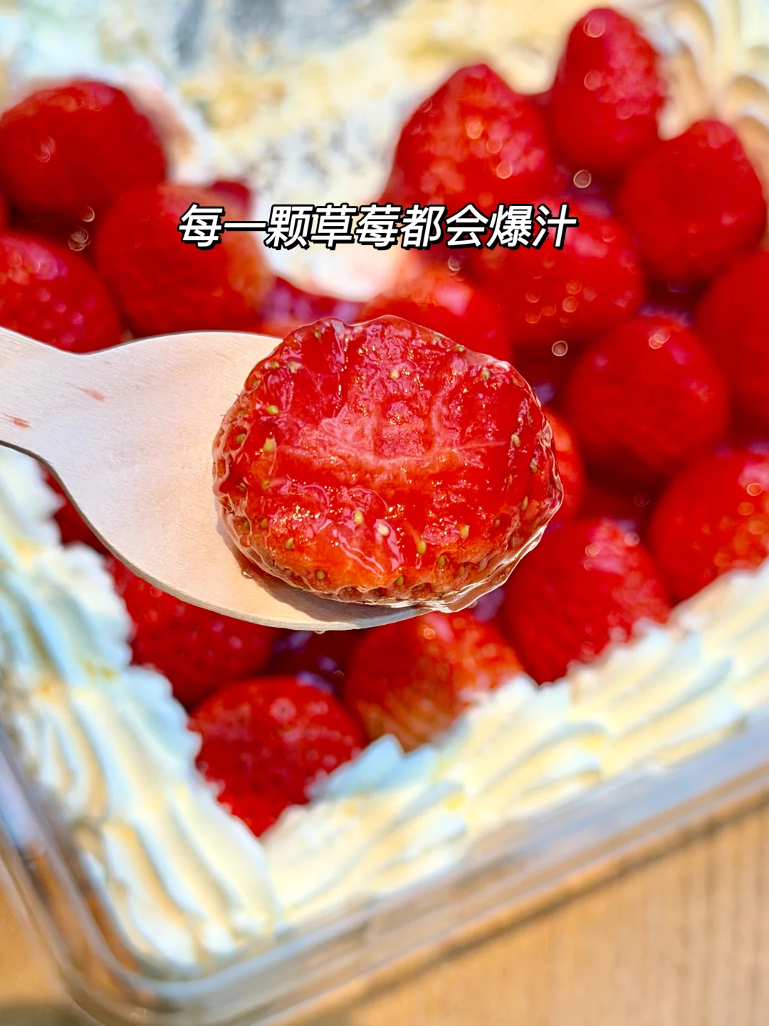 一口吃到草莓果肉+果酱+奶油+蛋糕胚的四重快乐~
