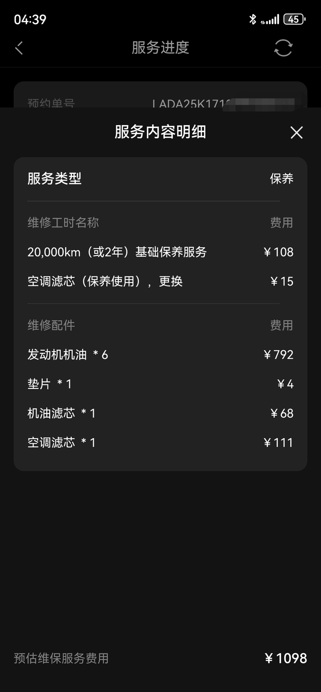领克01二保 01今年没有怎么跑,但也到了二保时间! 如图,保养费用清单!还好有APP上领的机油券和之前店里续保返的保养券!能抵扣一部分费用…整个二保时间估计也就一个半小时