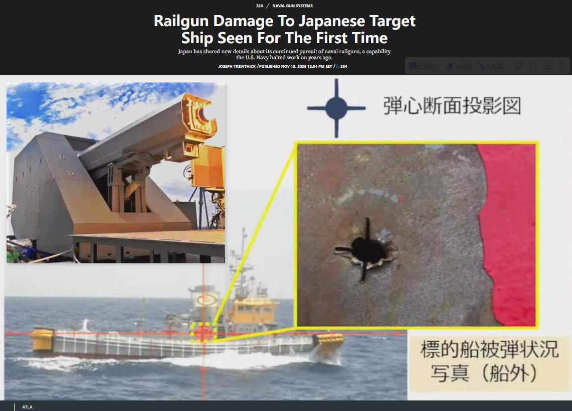 日前,某一类在各大社交平台“炫耀”日本的电磁炮,还发了一个AI视频。大概看了一下,大部分来自对岸的🐸。其目的无非洗脑岛民“鬼子”靠得住。 而本月13日,美国《战区》就公布了该电磁炮4月的测试图片。 《战区》特别提到,自上世纪80年代以来,中国一直在试验轨道炮。2018年,一门安装在大型炮塔上的轨道炮原型出现在中国人民解放军海军(PLAN)的一艘船上。