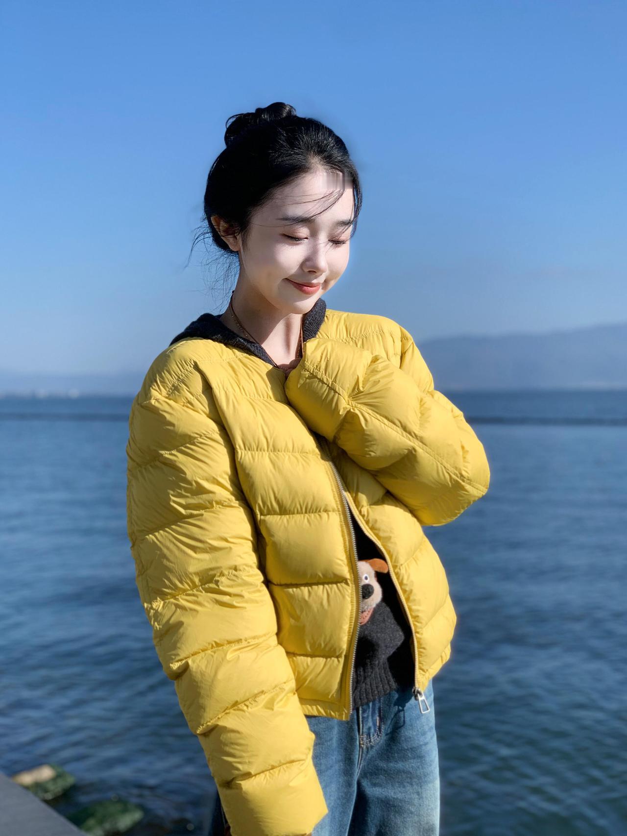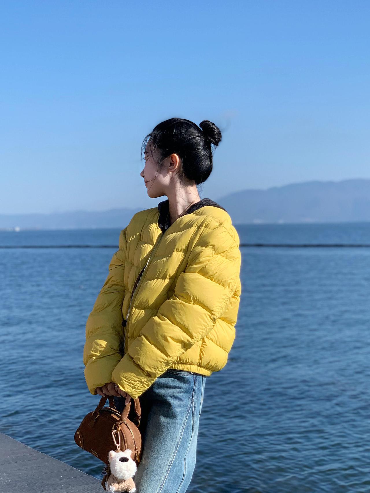 黄衣少女倚水边
