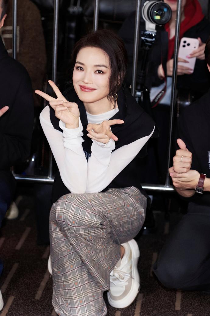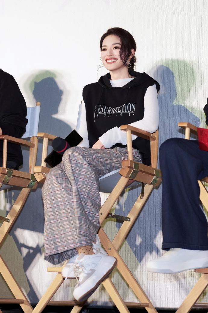 最近舒淇和易烊千玺在北京宣传新片,两位搭配的都很时尚,看起来像同龄人。 舒淇里面穿白色打底衫,外面套装黑色的字母风服饰,两件衣服叠穿的效果很不错。 她下身穿漂亮的格纹裤,脚踩白色的板鞋,展现出了满满的青春活力气息。 舒淇的身段是极为苗条的,这次穿的很宽松,还挽着迷人的秀发,确实是特别的美。 易烊千玺用黑色的运动风卫衣搭配灰色裤子,脚踩黑色皮鞋,显得很有精神。 他如今是越来越有男子气概了,也更有大牌明星风采了。
