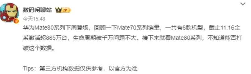 有消息称,华为Mate70全系激活超885万+台,按照当前的趋势,有望突破1000万台。虽然还遥不及以前Mate系列的辉煌,但也是越来越好起来了。
