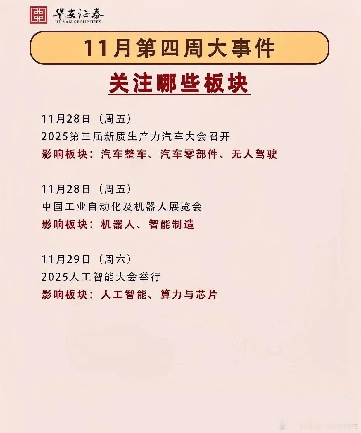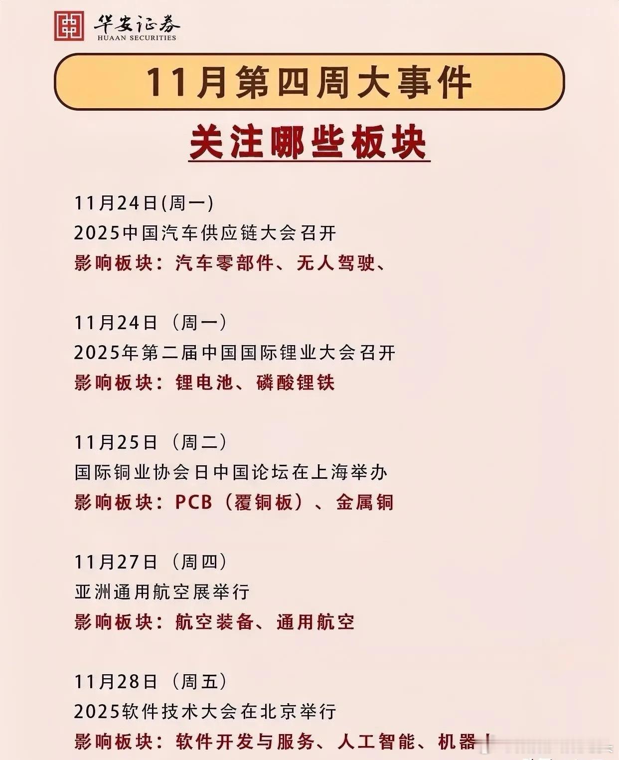 提前布局下周热点板块梳理分析!梳理了11月第四周(24-29日)行业大会信息,覆