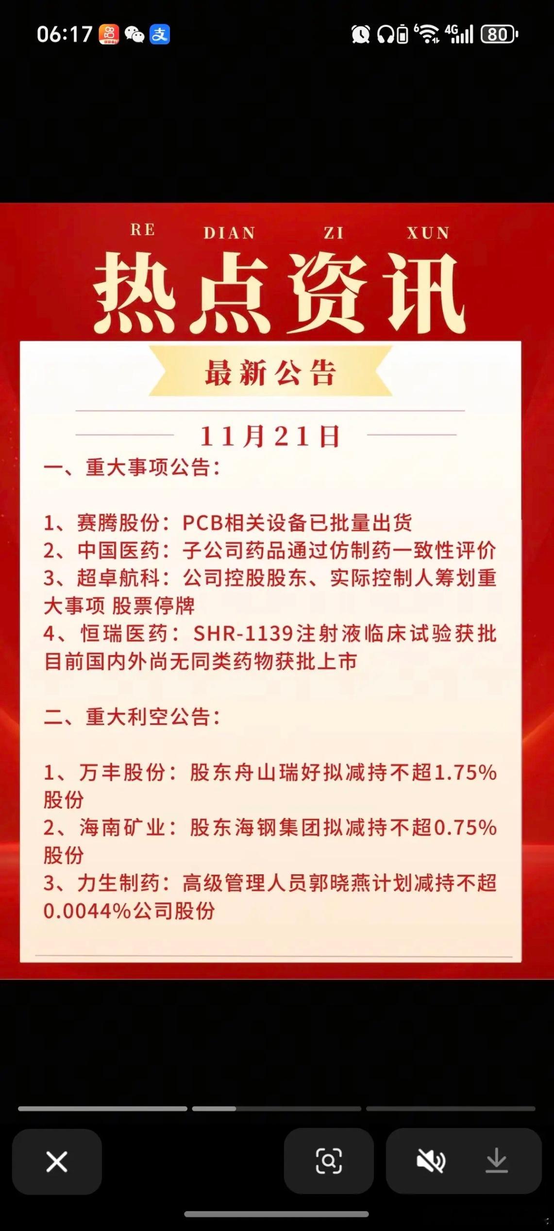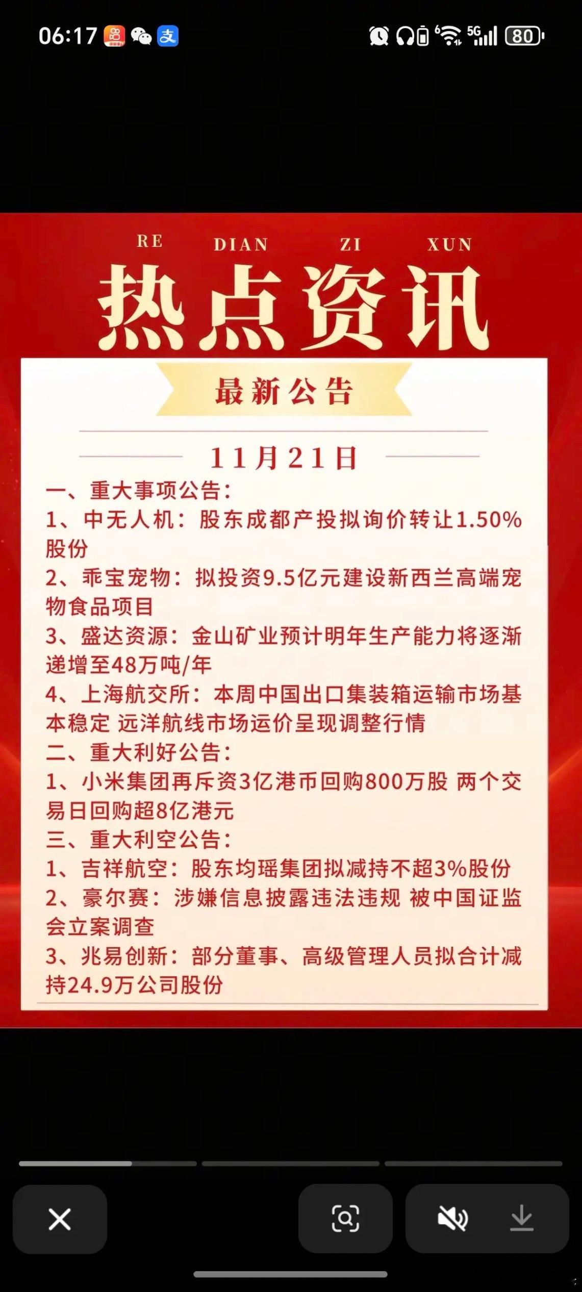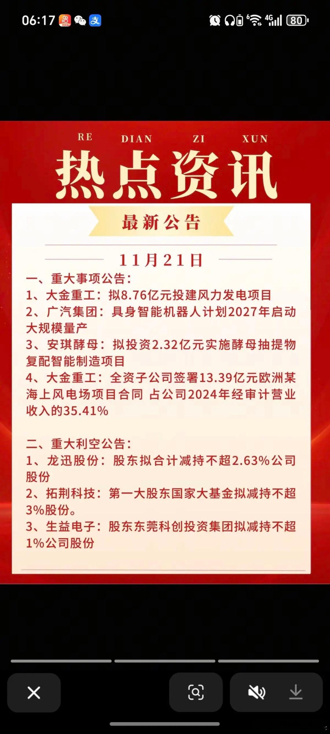 11.22周六重要财经公告!重大事项公告重大利好利空公告上市公司生产经营状况