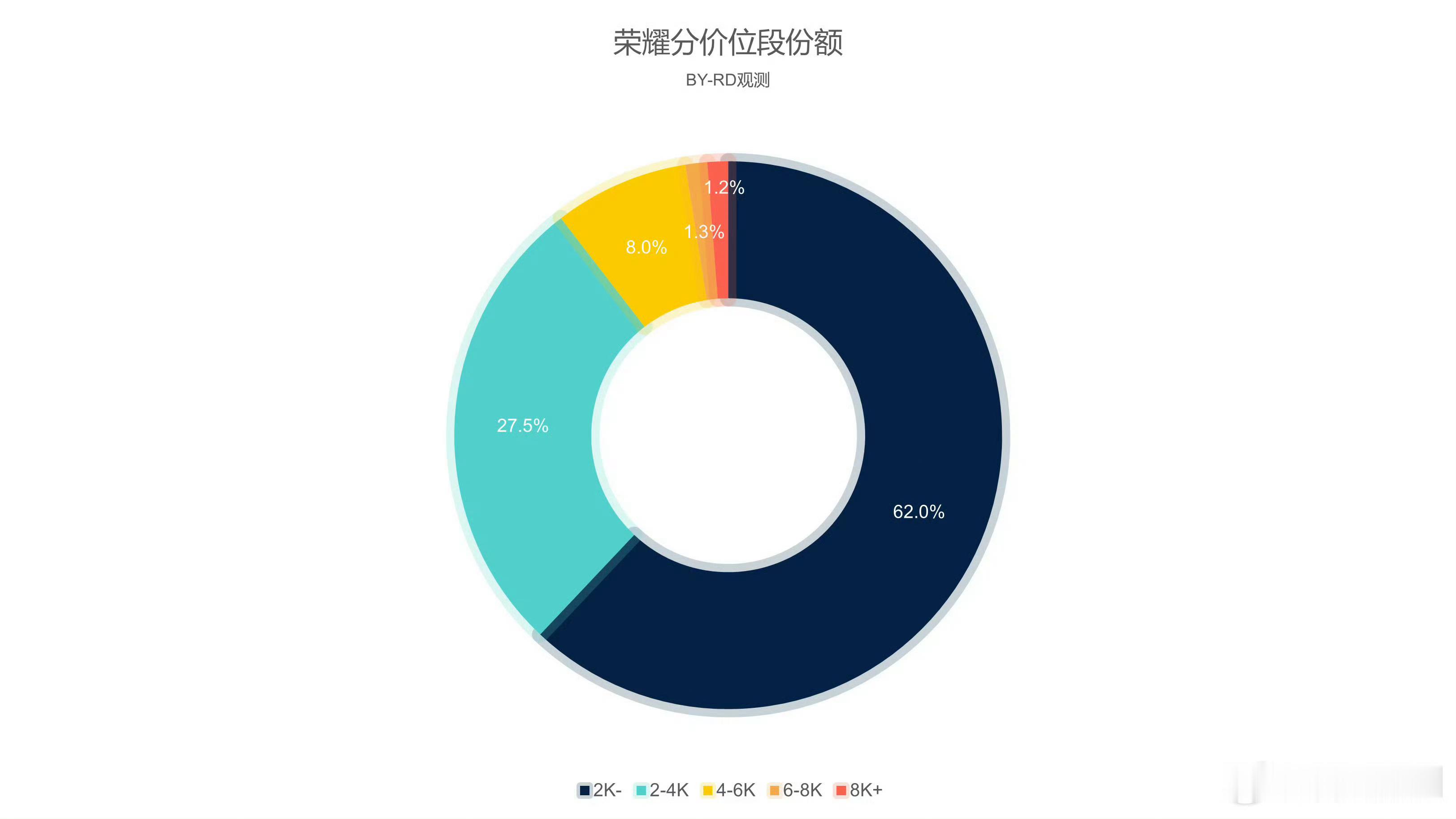 苹果还是恐怖如斯,国产手机厂商里华为算是价位分布比较均衡,YMOV 价位段布局都差不多。