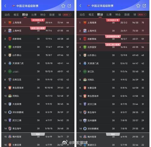 2025赛季中超联赛今日落下帷幕,随着最后一轮8场赛事同步收官,积分榜最終排序正式揭暁ーー上海海港、上海申花、成都蓉城、北京国安、山东泰山、天津津门虎、浙江队依次锁定前七席位,与2024赛季排名完全一致