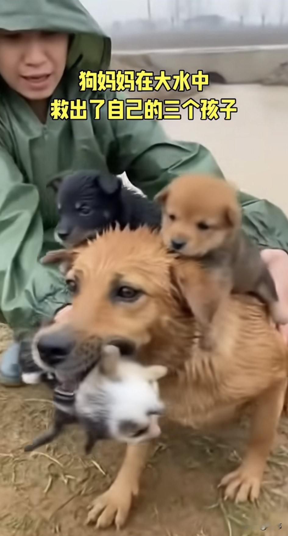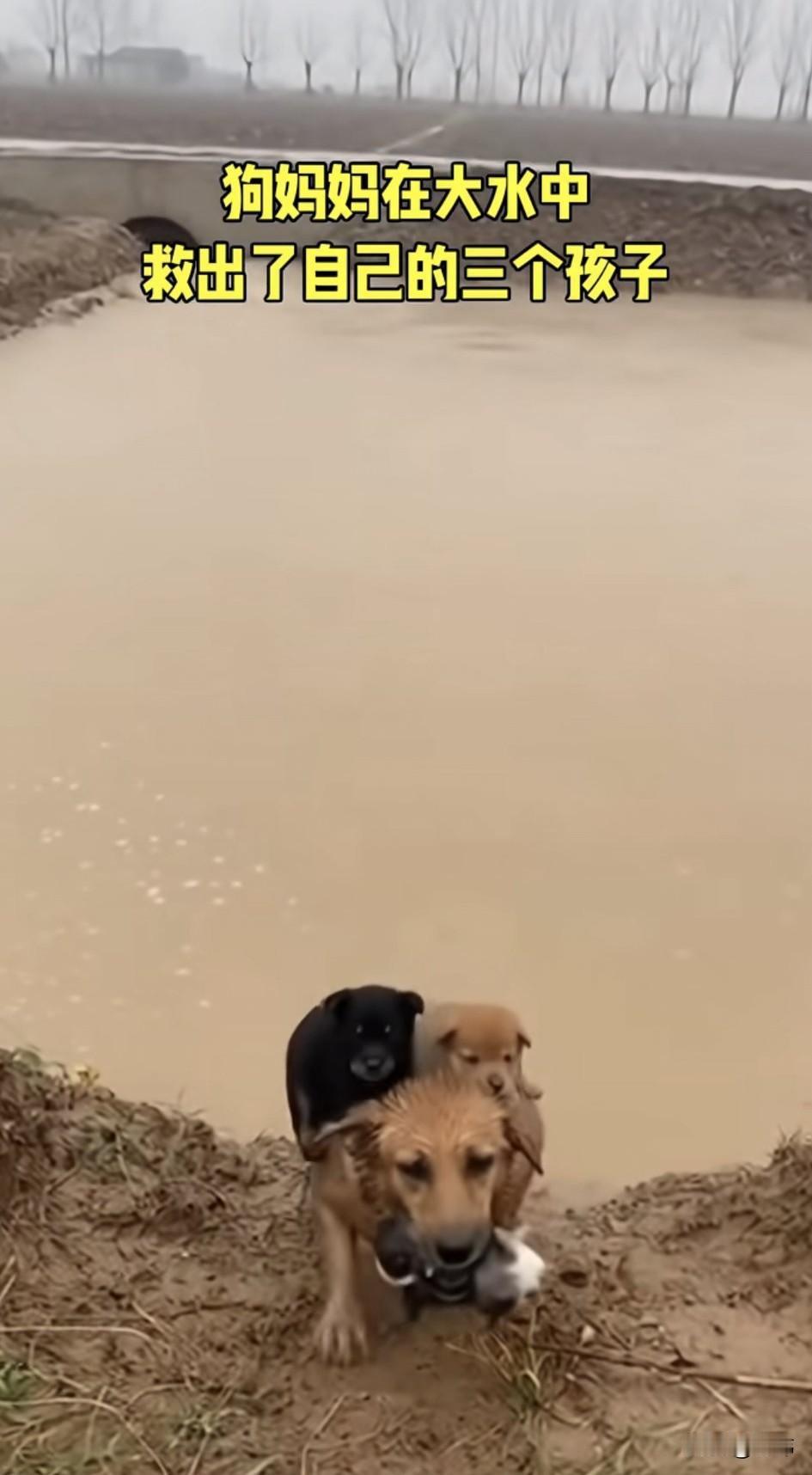 泪目了!一只流浪狗妈妈把家安在了一个水沟的洞里,结果突然普降大雨,它的家被大水淹没了,而它当时正在外面找食物,当它回来的时候发现自己家被淹没了,立刻跳下水游向了家。 它的眼里充满了亲情和爱,这份责任带给它无限的坚定,因为它的三只狗宝宝还在家里,它拼了命游了过去,终于找到了困在一块大石头上的狗宝宝,它让两个孩子骑在它的背上,嘴里再叼了一只,就这样把它们坨了回来。 当它游到岸边的时候,一位小姐姐看到了这一幕。用手机记录下来这令人感动的一幕,善良的她最终收养了它们一家,相信在她的照顾下,狗狗一家也会越来越好的。