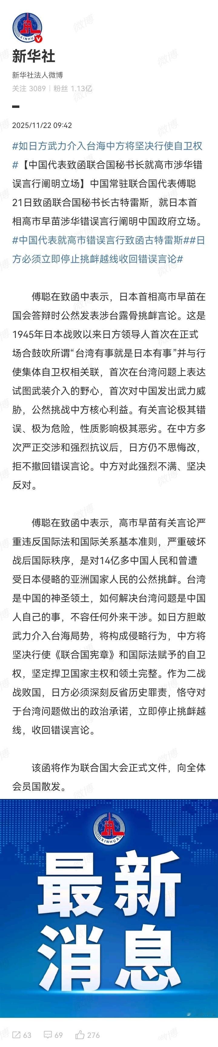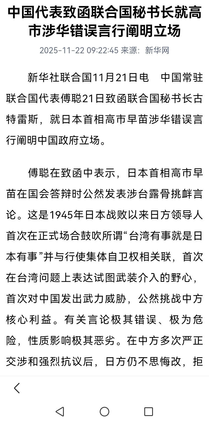闲话中日之间的战争恐怕是避免不了啦?中国驻日大使馆正式发文提及“敌国条款”,随后,日本海上自卫队发文公然叫嚣“全部准备好了”!截止今日,中日矛盾快速恶化,不可逆了。正如之前分析,从“奉示召见”进入“提高戒备”,最后就是“奉命反击”。在等不到搞事早完及日本收回、道歉及重申等行动,也就进入“提高戒备”阶段了。中国在不同场合密集提及“敌国条款”,就是这一阶段的显著表现之一。中国现在正式向联合国递交函件,联合国也将这份函件作为联合国正式文件分发给全部193个会员国。这份函件的唯一重点就一个:《联合国宪章》赋予五大创始国的特权:当德国、意大利、日本等法西斯或军国主义国家的任何一国有再次实施侵略政策的任何步骤,中法苏英美联合国创始国有权对其直接实施军事行动,无需安理会授权。这就是所谓的“敌国条款”。日本1953年加入联合国时,也是承认这些条款的。但是加入之后,日本长期活动影响其他会员国,试图撤销这几条款,终没得逞。“敌国条款”主要指的是《联合国宪章》第五十三条、第七十七条、第一百零七条的条款。具体原文为:第五十三条一、安全理事会对于职权内之执行行动,在适当情形下,应利用此项区域办法或区域机关。如无安全理事会之授权,不得依区域办法或由区域机关采取任何执行行动;但关于依第一百零七条之规定对付本条第二项所指之任何敌国之步骤,或在区域办法内所取防备此等国家再施其侵略政策之步骤,截至本组织经各关系政府之请求,对于此等国家之再次侵略,能担负防止责任时为止,不在此限。二、本条第一项所称敌国系指第二次世界大战中为本宪章任何签字国之敌国而言。第七十七条一、托管制度适用于依托管协定所置于该制度下之下列各种类之领土:(一)现在委任统治下之领土。(二)因第二次世界大战结果或将自敌国割离之领土。(三)负管理责任之国家自愿置于该制度下之领土。二、关于上列种类中之何种领土将置于托管制度之下,及其条件,为此后协定所当规定之事项。第一百零七条本宪章并不取消或禁止负行动责任之政府对于在第二次世界大战中本宪章任何签字国之敌国因该次战争而采取或受权执行之行动。依据《波茨坦公告》及《联合国宪章》规定,日本的国土范围仅限于“本州、北海道、九州、四国及由吾人指定的其他小岛。”这里的“吾人”,也就是联合国缔约国,五大常任理事国。日本战败后,所有侵吞的土地都吐出来了,比如琉球群岛、台湾岛及澎湖列岛、南海岛礁、东南亚占领国家等等,这些土地都一一物归原主了。唯独琉球群岛被美国私底下交给了日本,但交给日本的只有行政治理权,领土主权并没有交给日本。所以,全世界并没有“冲绳县”,只有琉球群岛。现在中国在联合国重新提及“琉球群岛地位未定”,日本是相当害怕,也是相当恼羞成怒的!日本痴心妄想,妄图借美国霸权余晖,通过拉美国下水的方式,赌一次国运。历史上,日本赌了五次:甲午海战,向大清运兵船只突然炮击,击败了大清,成为亚洲老大;日俄战争,向沙俄太平洋舰队突然袭击,击败了沙俄,跻身列强序列;918事变,侵华日军关东军突然袭击奉天,强占了东三省;77事变,侵华日军在卢沟桥突然炮击宛平县城,悍然发到了全面侵华战争;偷袭珍珠港,日本海军妄图复制突袭大清、沙俄的模式彻底击垮美国……只是,大清慈禧太后、李鸿章太腐败无能了,本身也算列强之一、亚洲一流的大清,硬生生被亚洲二流的日本偷袭得手了,随后日本赌赢了三次。第四次、第五次日本差一点就赢了,如果不是中法苏英美的同盟国联合对德意日作战,最后美国向日本本岛投放两颗原子弹,日本绝对不会这么快无条件投降的。所以,日本至今,对这次战败是心不甘情不愿的。骨子里更是只承认败于美国、苏联,并不是败于中国。这也是为什么日本人至今非常害怕美国、俄罗斯,却始终瞧不起中国的根本原因。战后,因为美国出于与苏联打“冷战”需要,将日本作为前沿基地及后方供应基地,与日本之间进行了大量肮脏交易,这包括:日本天皇逃脱了战争罪行的惩罚,依然保留了下来;日本甲级战犯依然有很多逃脱了战争罪行的惩罚,他们更是进入内阁,继续影响着日本战后政治生态、方向;日本731部队全部实验资料及成果被美国接管后,美国旋即在马里兰州设立德特里克堡生物实验室,作为细菌战研究基地。日本靖国神社大量供奉甲级战犯牌位,在意识形态领域继续向全日本人宣扬“天皇”及军国主义思想;日本防卫省偷偷扩军备战,一步步恢复日本自卫队向国防军的转变,并逐步从有限自卫转向出兵海外;中国现在正式函知联合国及全体193个会员国,目的只有一个:中国在收复台湾省的军事行动一旦开始,就可以直接对日本四岛采取先发制人的军事打击了。届时,全日本都是战场!(究竟是等日本军队异动了才展开全面军事打击,还是不宣而战,现在又成为新的争论焦点了。中国总给人一种打不还手、骂不还口的刻板印象……被动啊!)