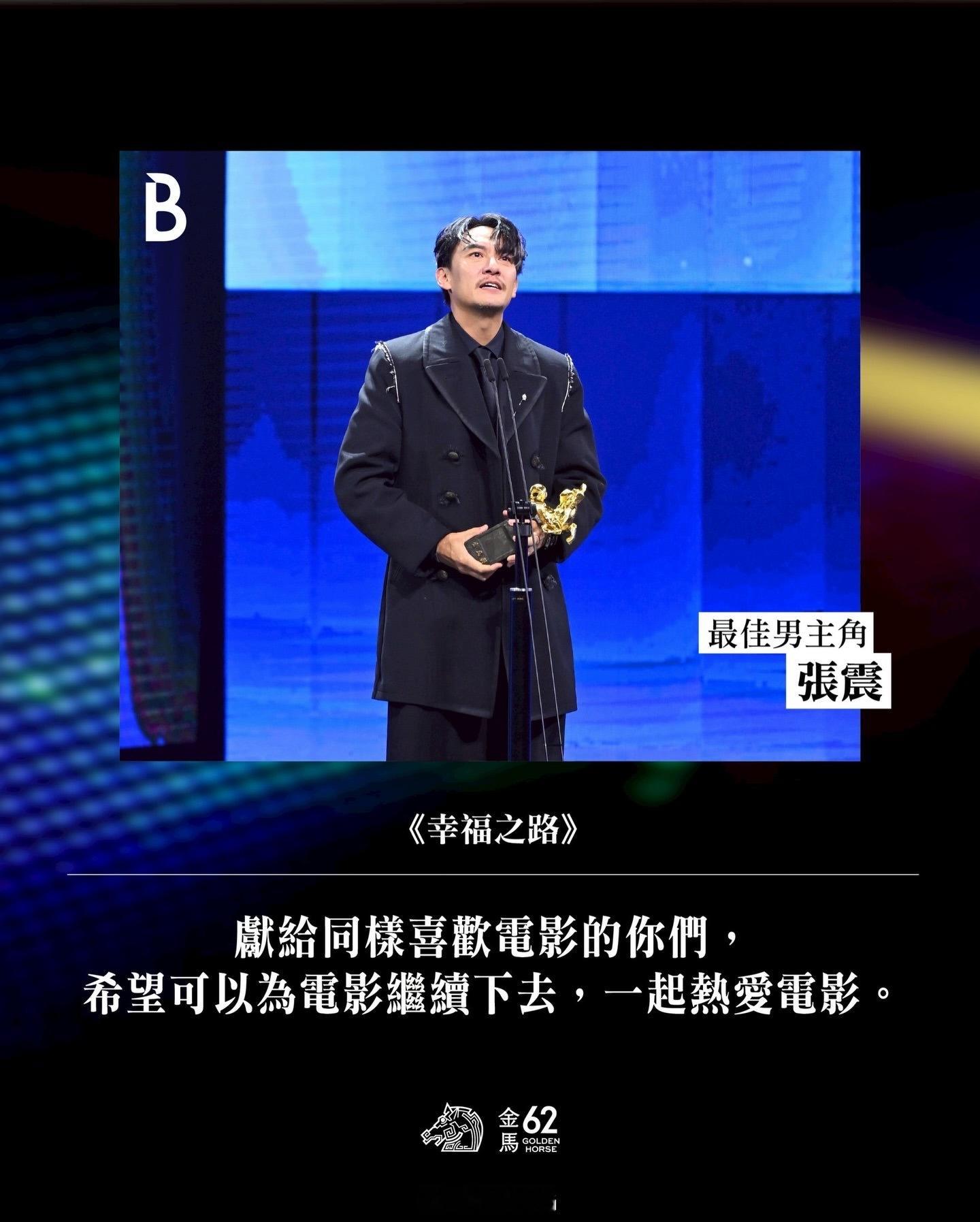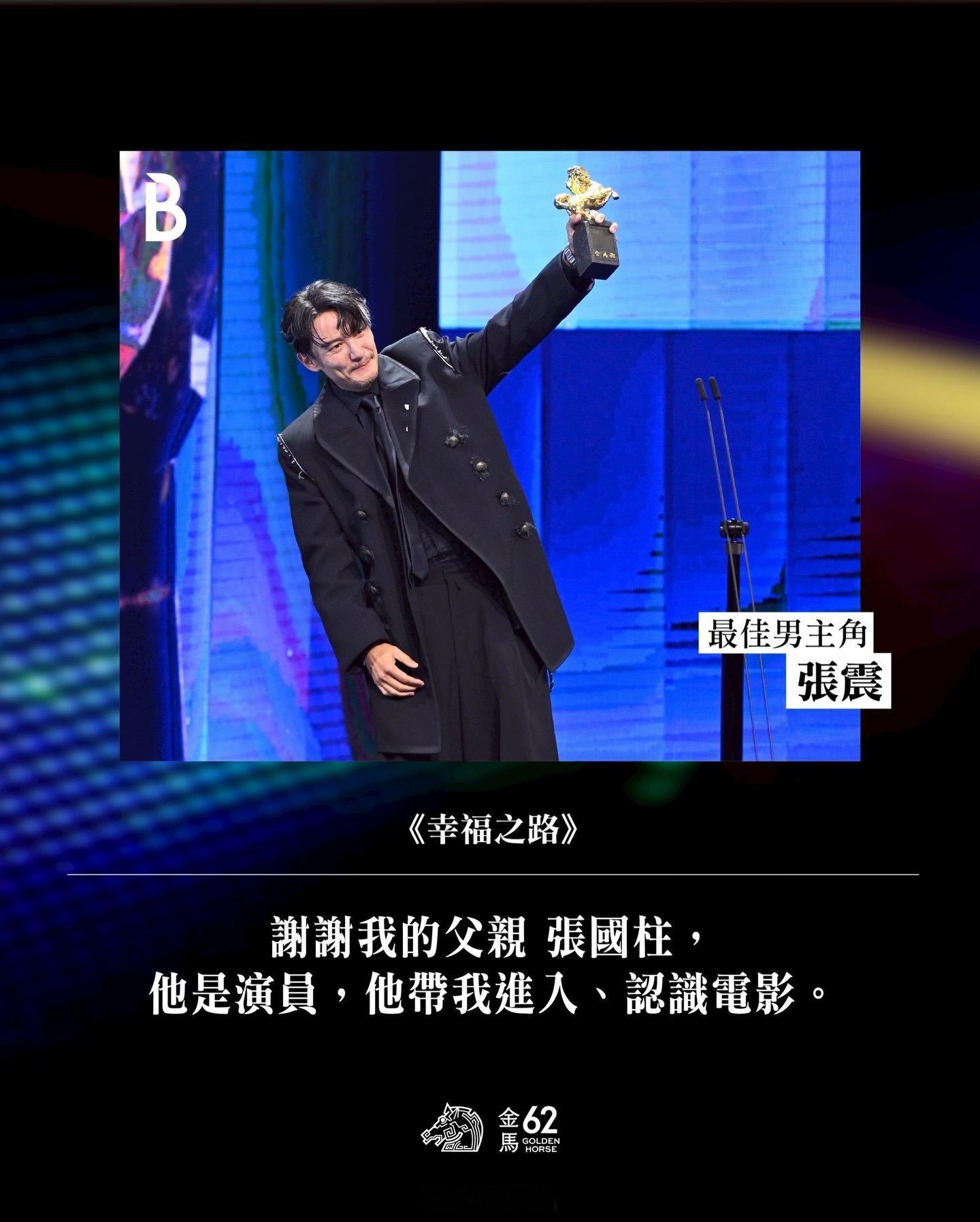 二封影帝🏆🐎的张震 ,特别感谢父亲,「我的父亲,张国柱。他是演员,他带我进入、认识电影,让我一直在,从出道 13 岁到现在,都一直不断地相信电影、热爱电影。最后,我想献给所有热爱电影的你们,希望你们可以继续下去。」💖
