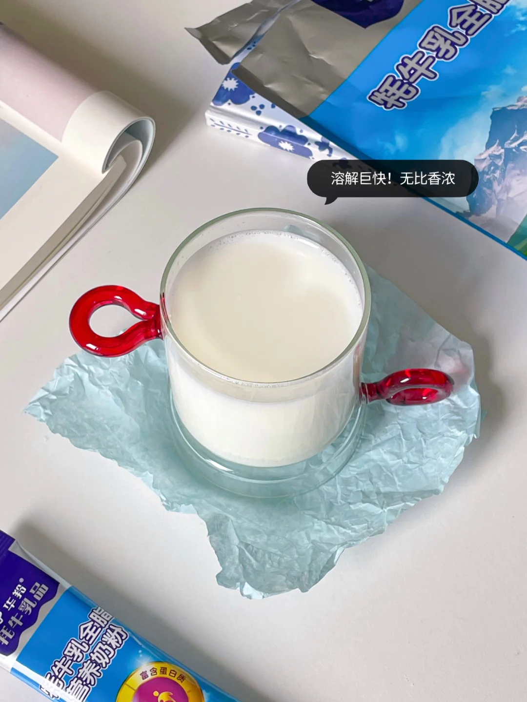尤其喜欢冲泡好静置一段时间后上面结的那层厚厚奶皮~ 奶味浓厚很好吃😋