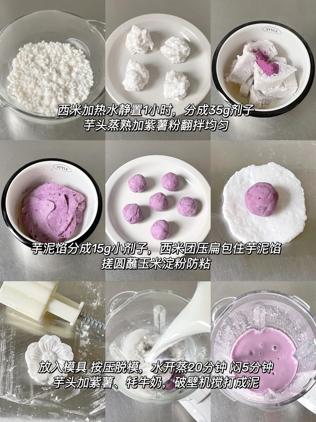 西米100g 温水100g 芋头100g 紫薯粉