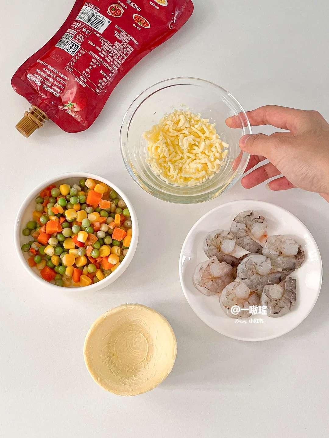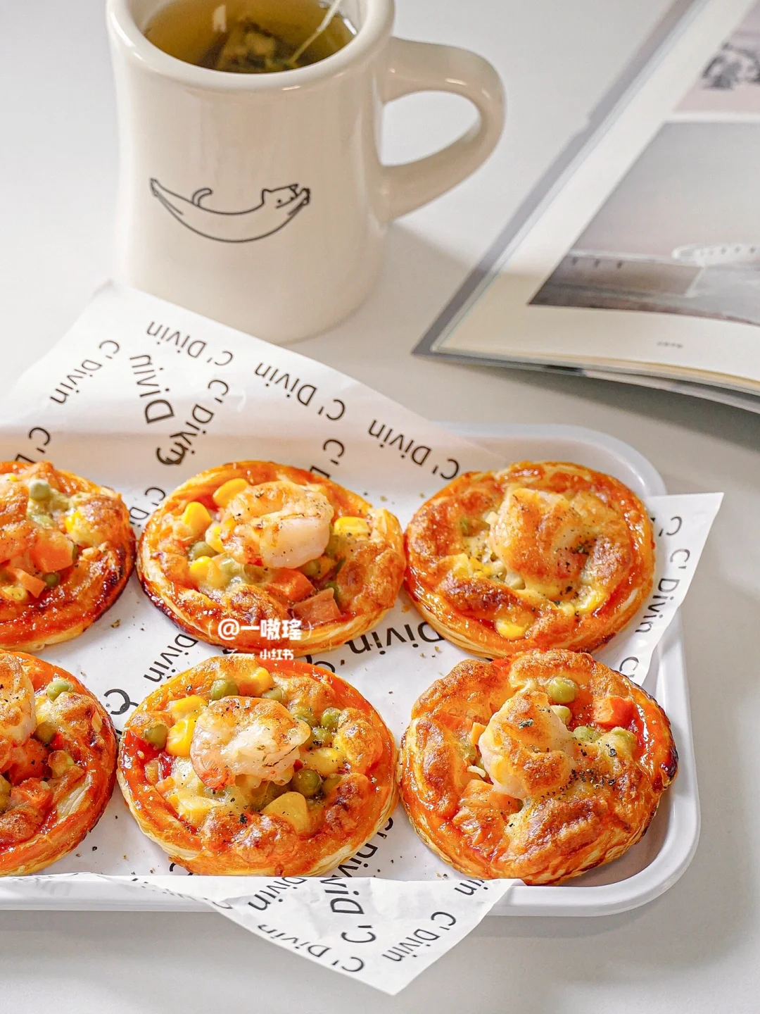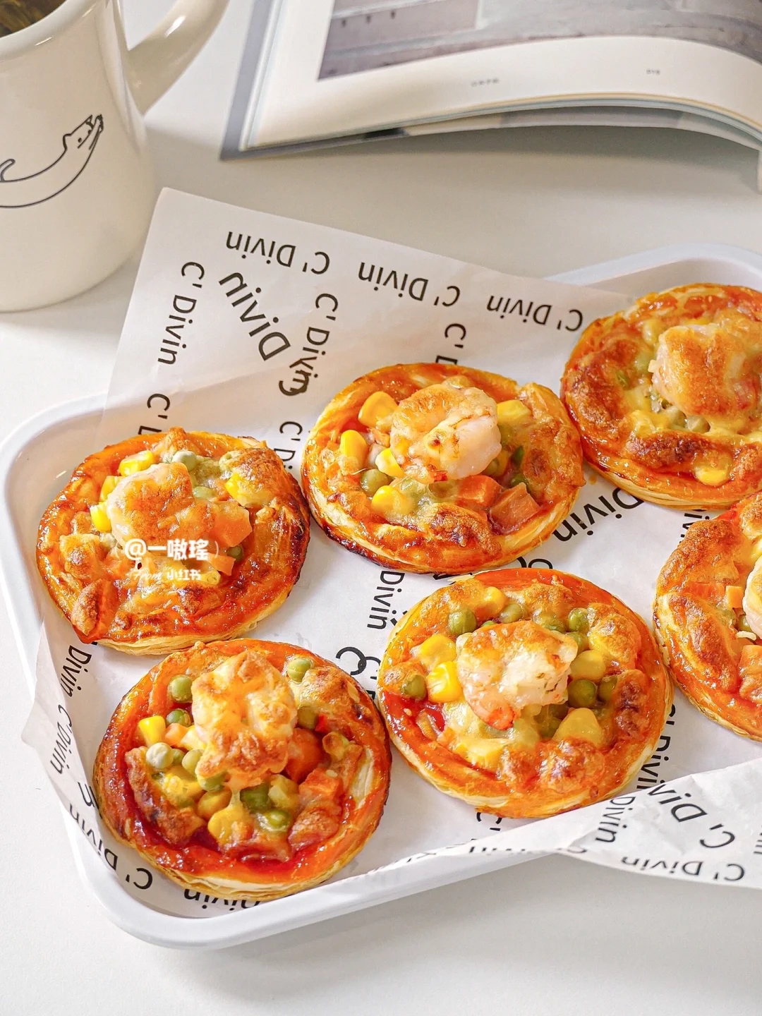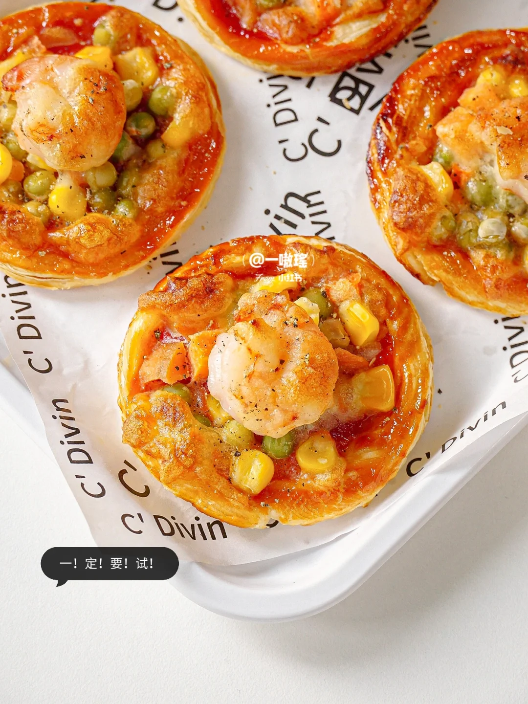 🍕轻松实现披萨自由! 做法简单快手 没有一丁儿难度 酥酥脆脆超好吃,手残党也能get的美味小吃 - 🔖食材 蛋挞皮 蔬菜丁(玉米、胡萝卜、豌豆) 虾仁 番茄酱 芝士碎 黑胡椒 ✨做法 🔸蛋挞皮冷冻状态下去除锡纸 🔸刷番茄酱 🔸放上蔬菜丁和虾仁 🔸撒上芝士碎 🔸烤箱预热180度15分钟(空气炸锅180度20分钟)