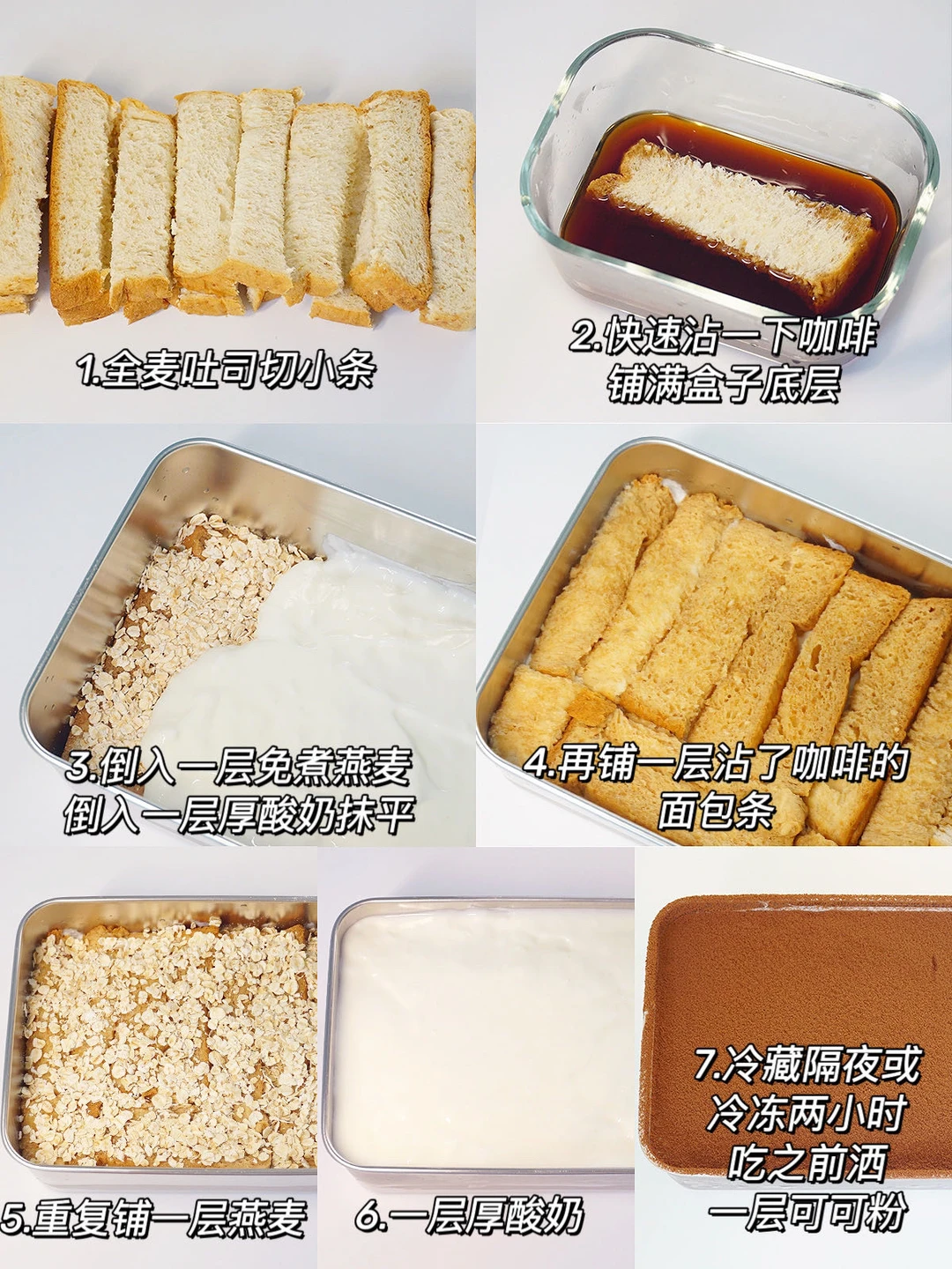 食材:全麦吐司 浓稠酸奶 即食燕麦 咖啡 可可粉