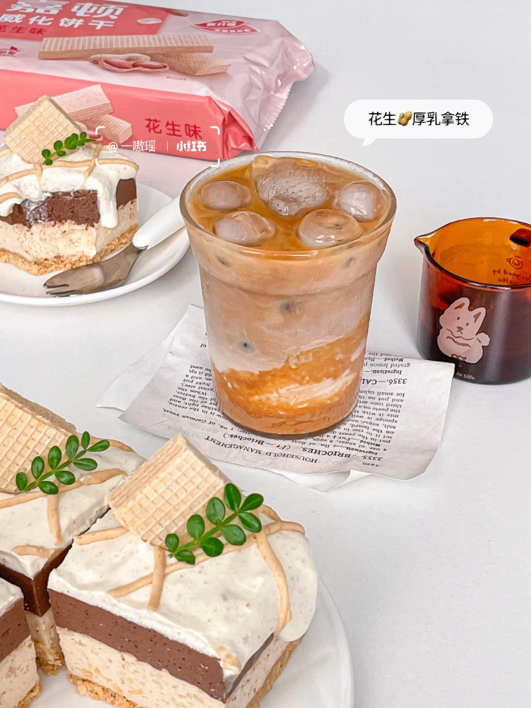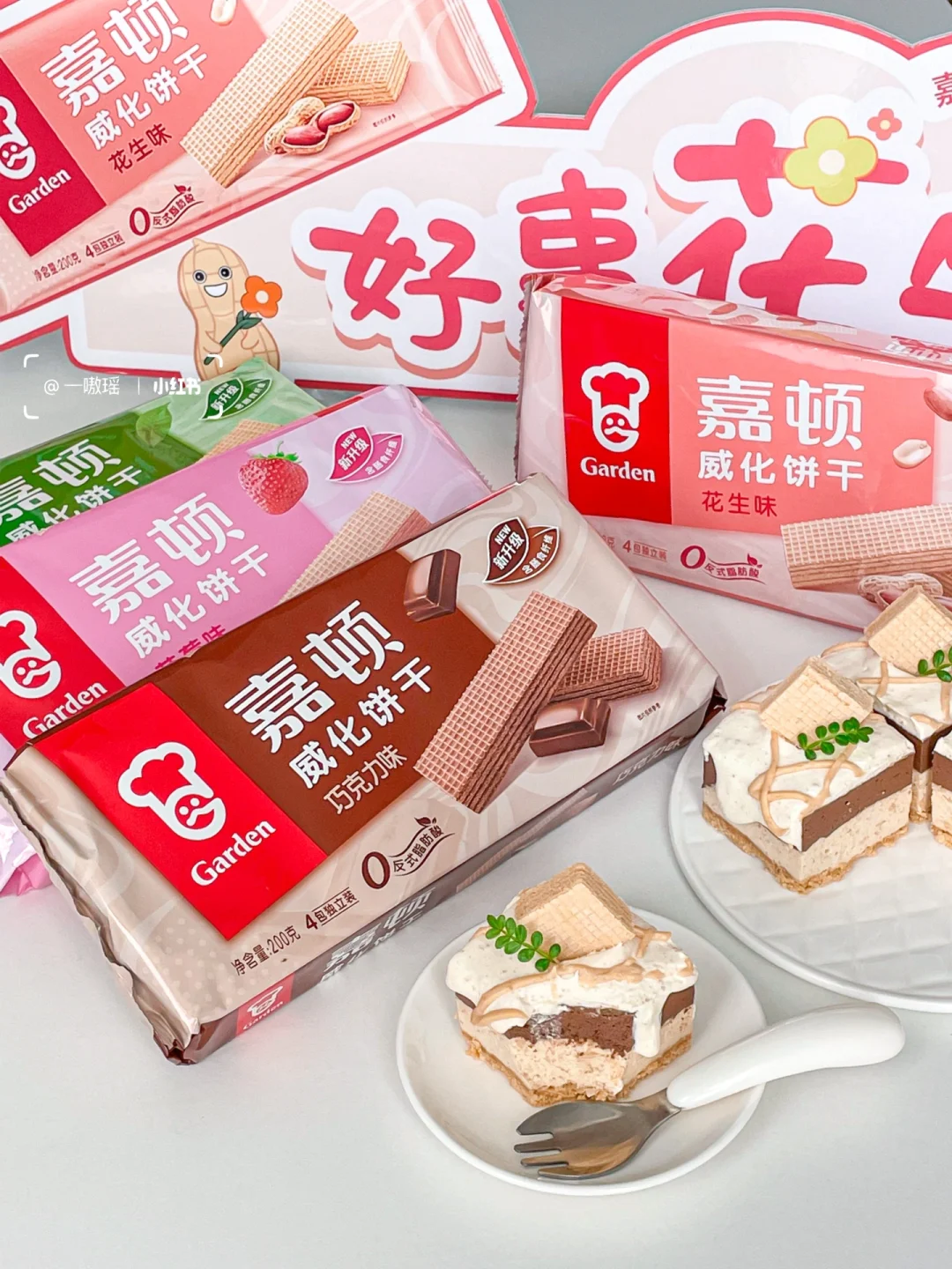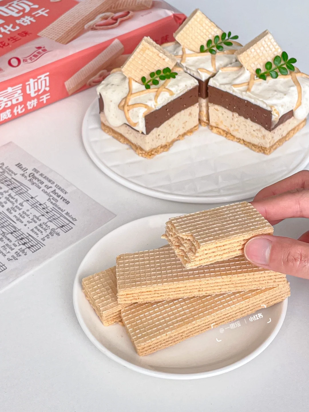 🤎喜欢了很久的嘉顿威化饼干,一共九种口味,这次用花生味🥜做了小甜品🥳