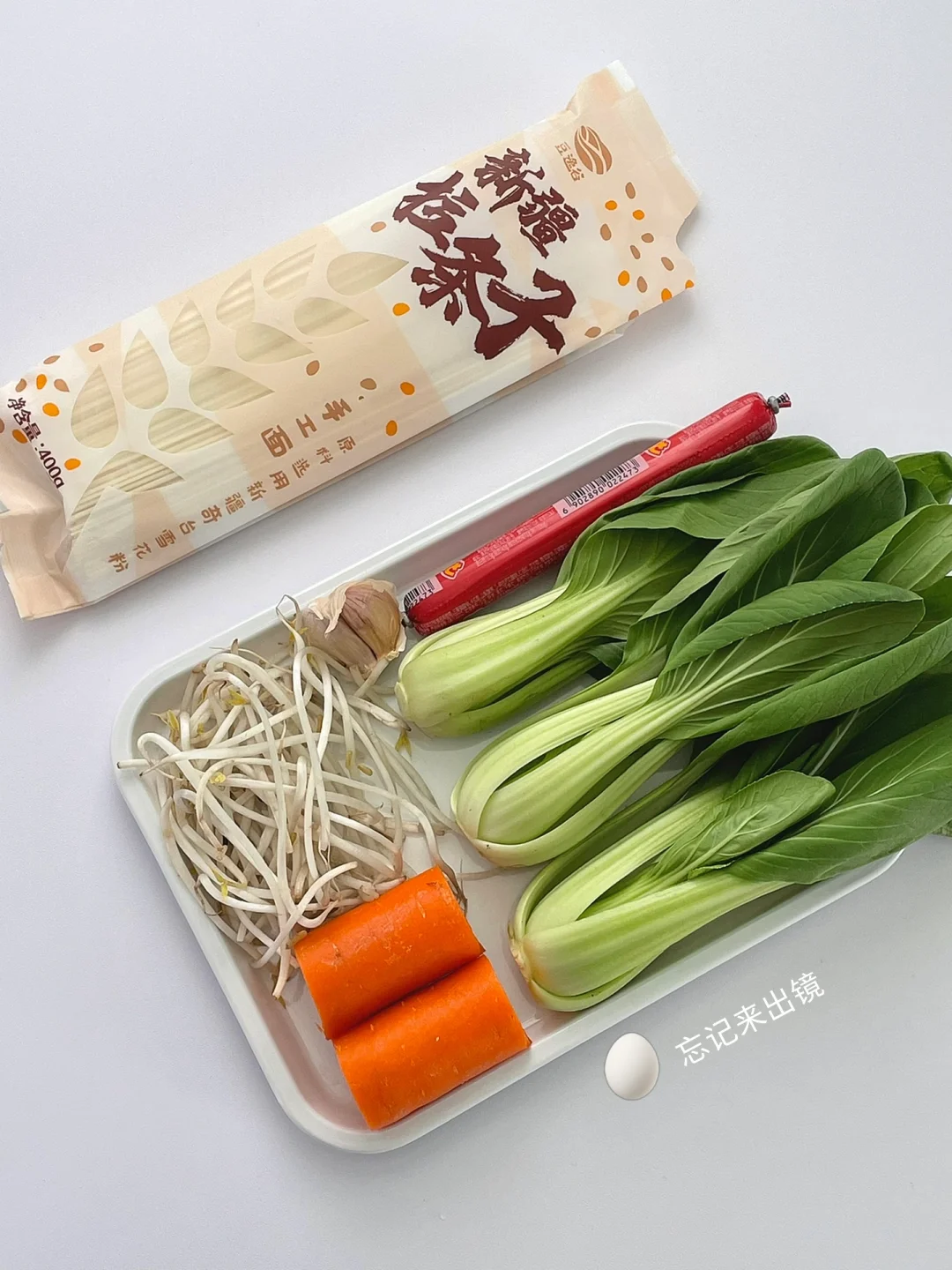 青菜 豆芽 胡萝卜 火腿肠 鸡蛋 新疆拉条子 大蒜头