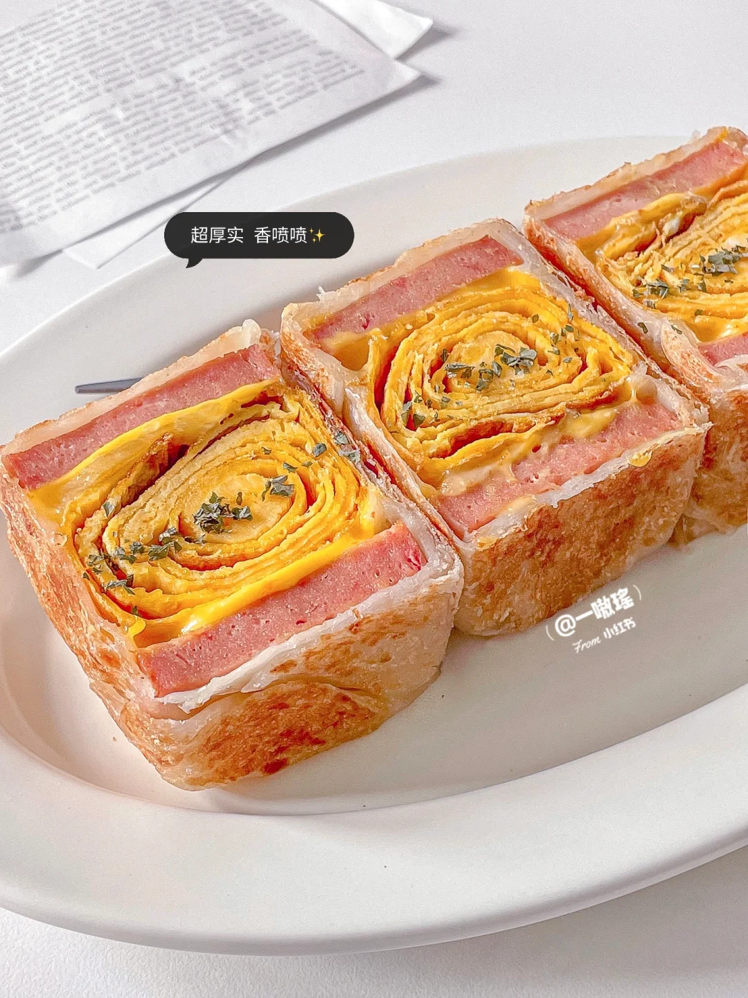手抓饼神仙吃法✨厚蛋烧午餐肉芝士三明治