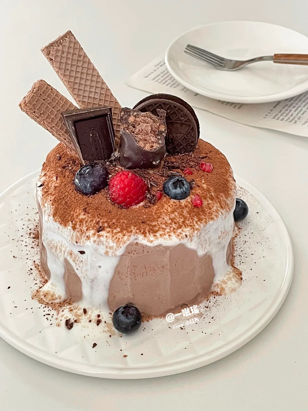 ·浓稠酸奶加巧克力酱搅匀装裱花袋