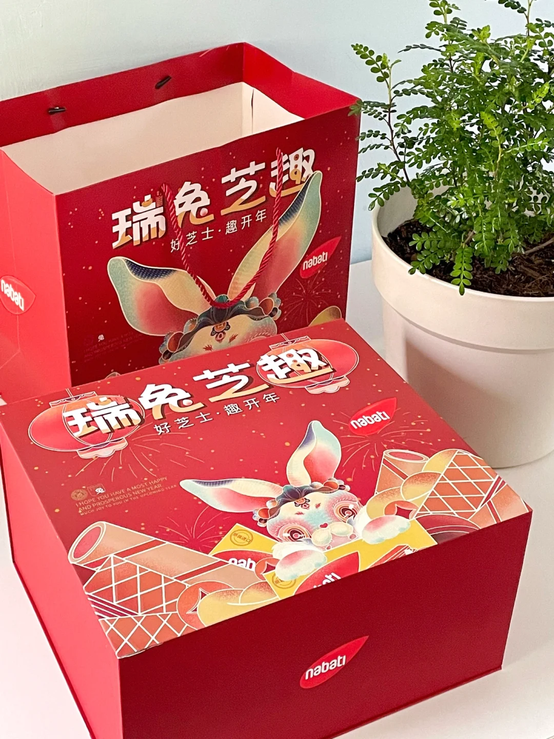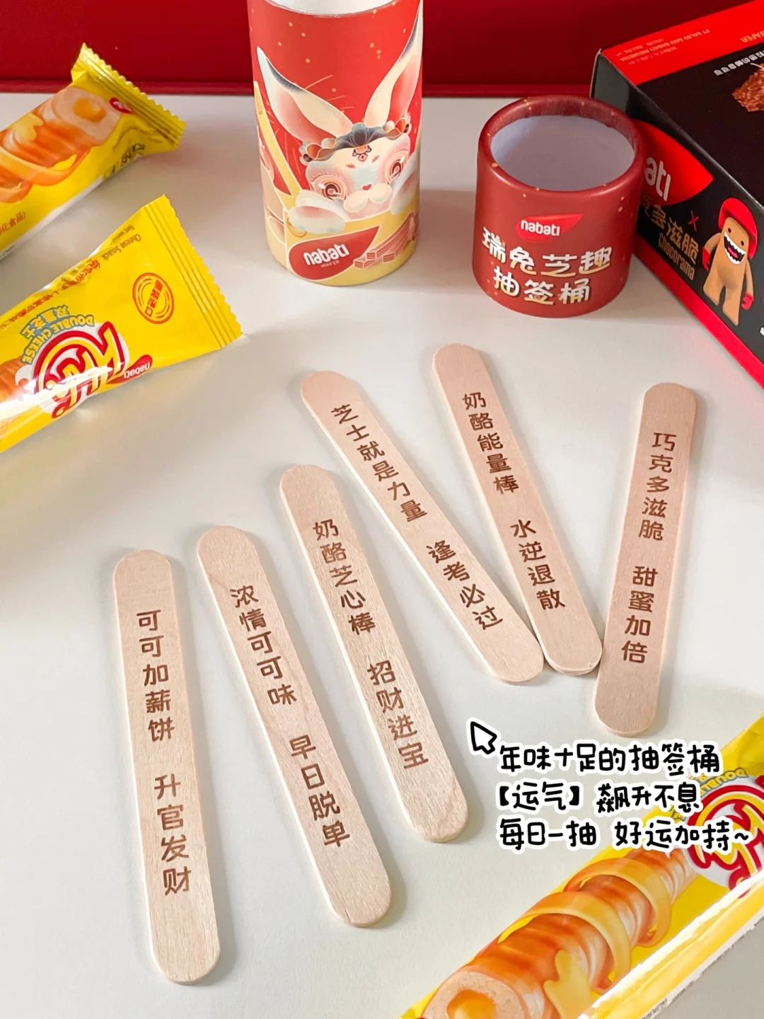 礼盒🎁包装很好看,里面还有新年抽签桶!旺桃花旺事业必须来一签,抽到挚爱奶酪能量棒,超厚芝士涂层很好吃😋 合我心意了